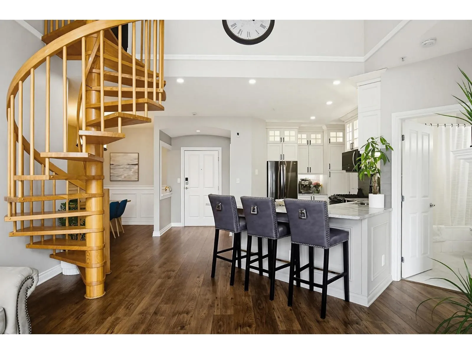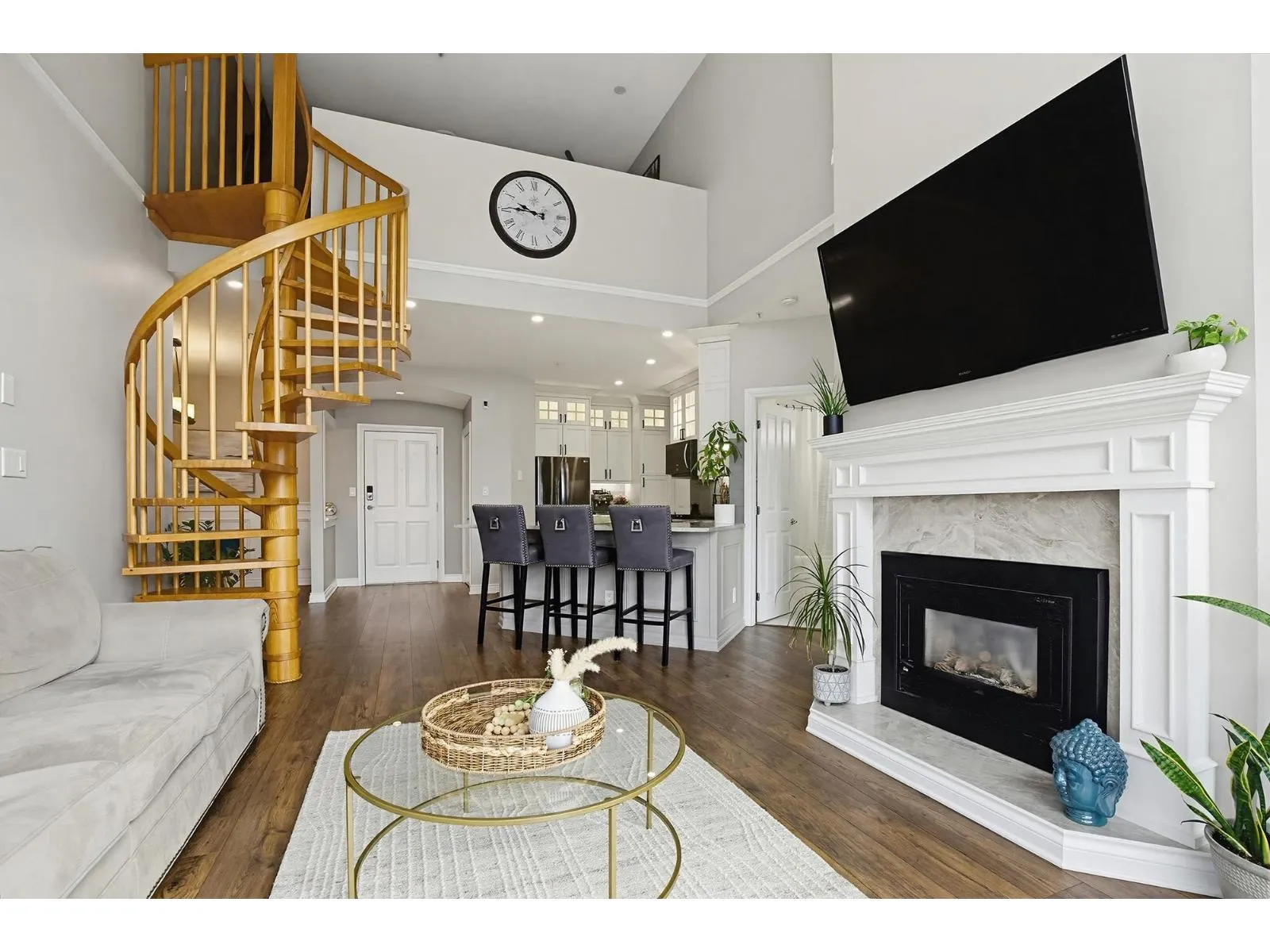 Yale Terrace’s crown jewel! 2bd 2bth redefining elevated living w/Dramatic 18ft vaulted ceilings & floor-to-ceiling south-facing windows framing Mount Baker views. Stunning wooden spiral staircase to spacious loft, perfect as home office/gym/or media rm. Chef’s kitchen anchored w/ rich marble countertops & floor-to-ceiling cabinets, bold architectural & maximizing the sleek and modern aesthetic. Premium stainless GE gas range & appliances,