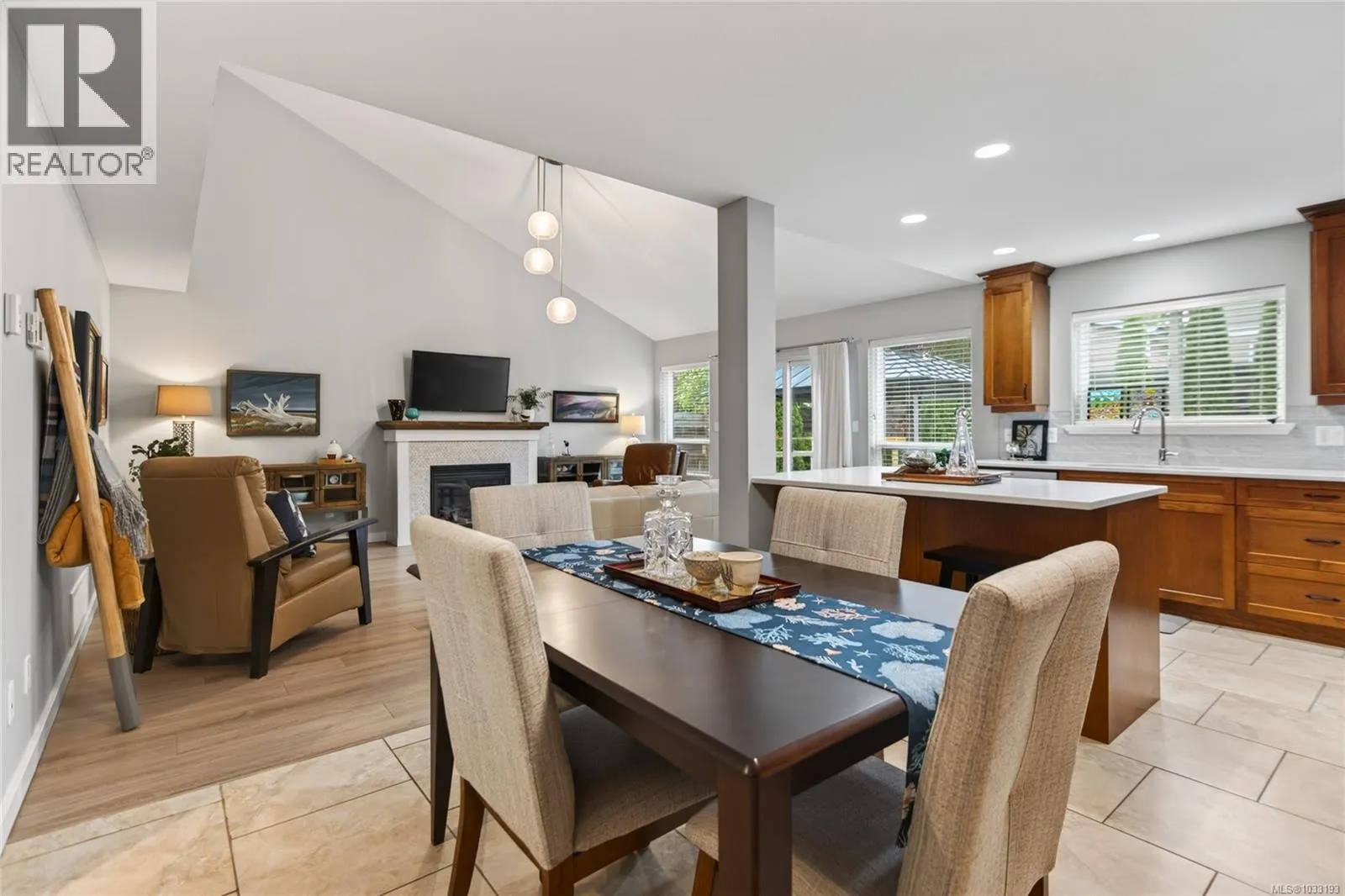 Beautiful 3 bdrm/2.5 bath home with character in a fabulous Comox neighbourhood! Situated on a quiet cul-de-sac this home offers 1737 sf with a modern feel, open plan & updated vinyl plank flooring. Stunning kitchen with a generous amount of cabinetry & quartz countertops extending into the dining area, plus a spacious island with seating space. Vaulted ceiling and gas