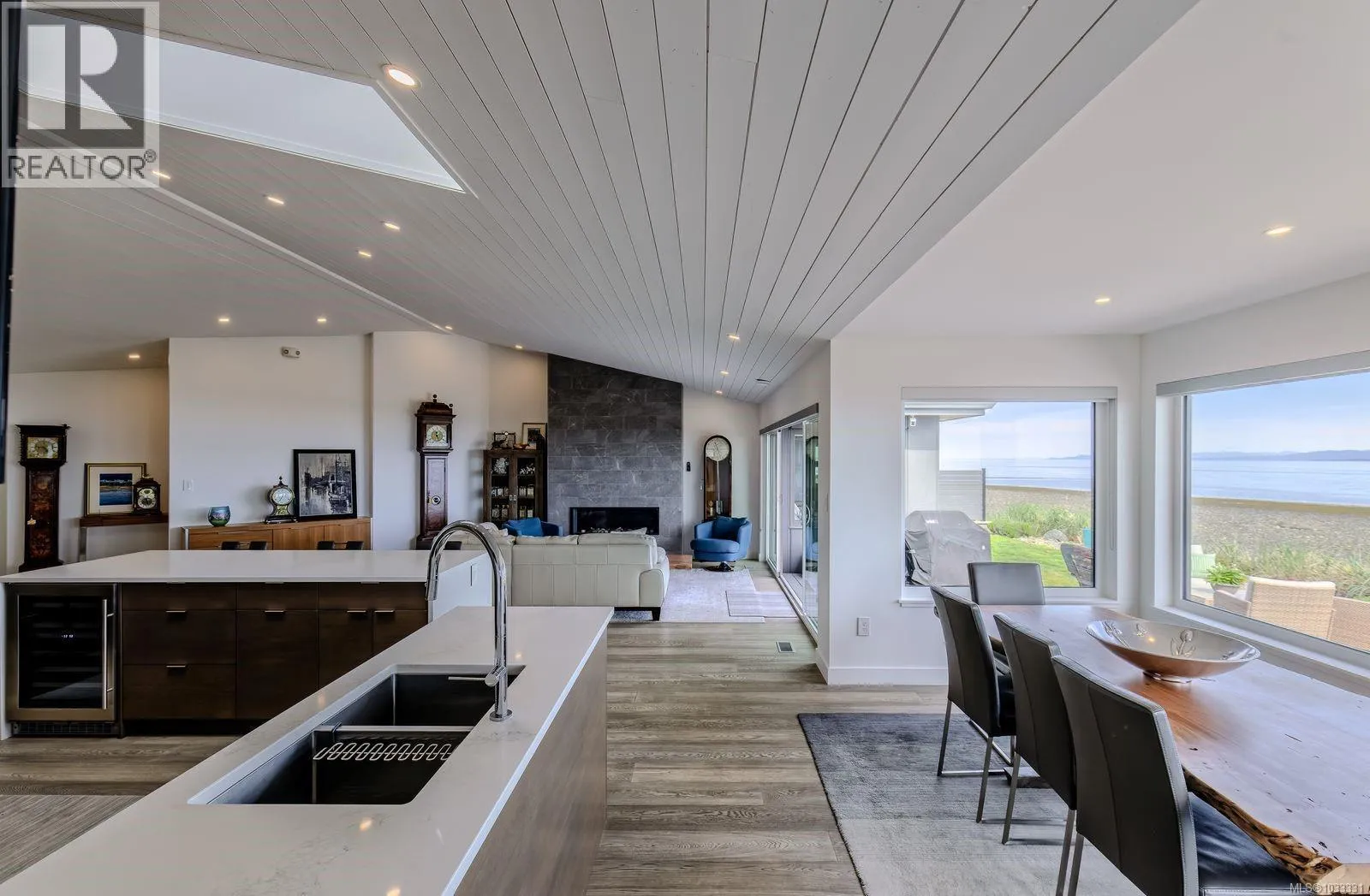 This is the coastal rancher you’ve been waiting for. Set on approximately 86 feet of walk-on waterfront along Columbia Beach, this beautifully renovated home offers a front-row seat to West Coast living—where boats glide by, sea life appears daily, and sunsets steal the show. Thoughtfully the open-concept layout showcases the panoramic ocean views, doors open from the living room to