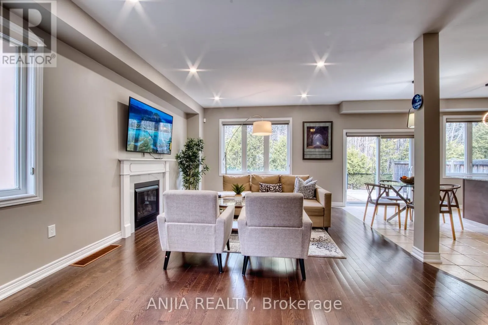 Walk to both primary and secondary schools! This spacious 4-bedroom family home is nestled on a picturesque, tree-lined lot. The fully fenced backyard offers a private oasis with mature trees along the rear fence and backs onto an open field.Featuring 9-ft ceilings on the main floor, a large window fills the open-concept living space with natural light and showcases beautiful