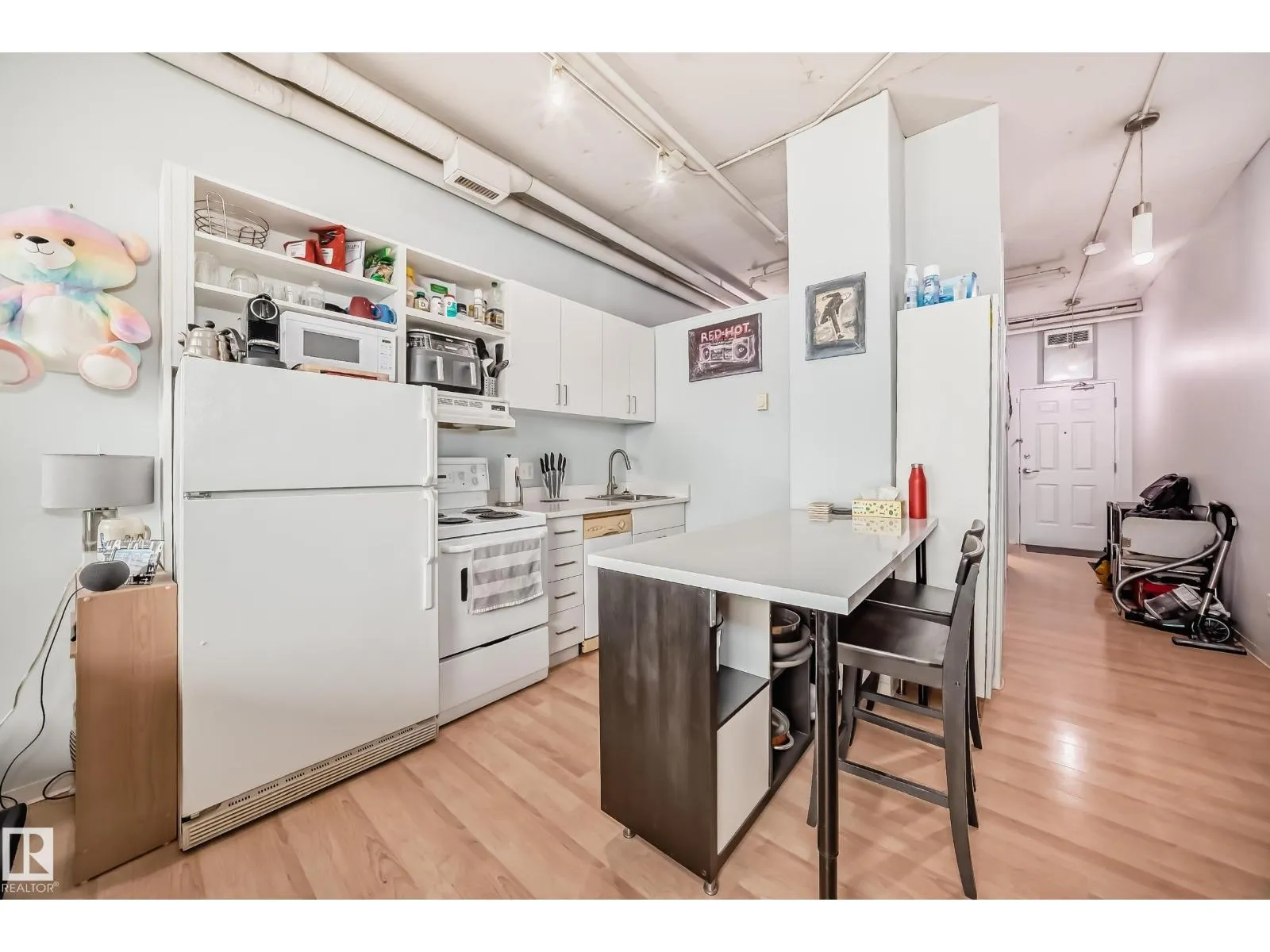 Welcome to urban living at its finest in the heart of downtown Edmonton! This modern loft offers stunning city views and an unbeatable location just steps away from the vibrant Ice District and Churchill square. This 1 bedroom, 1 bathroom home features an open concept layout with high ceilings that create an airy and spacious feel. The central LRT station