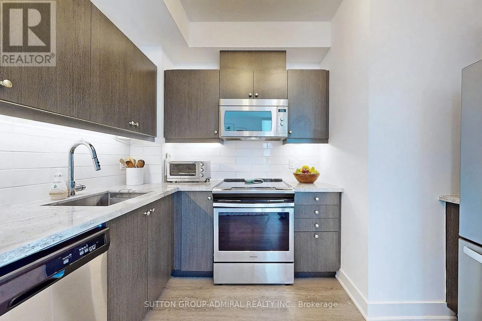 Truly a must see! unique bright open concept 1 bedroom southwest facing condo with 2 balconies! Impeccably utilized 588sq.ft of interior living space with an additional 155sq.ft balcony. Updated modern kitchen with quartz counter-top, ample storage space, backsplash, undermount lighting and full sized stainless steel appliances. Large primary bedroom with balcony entrance and walk-in closet. Steps to TTC Subway Station