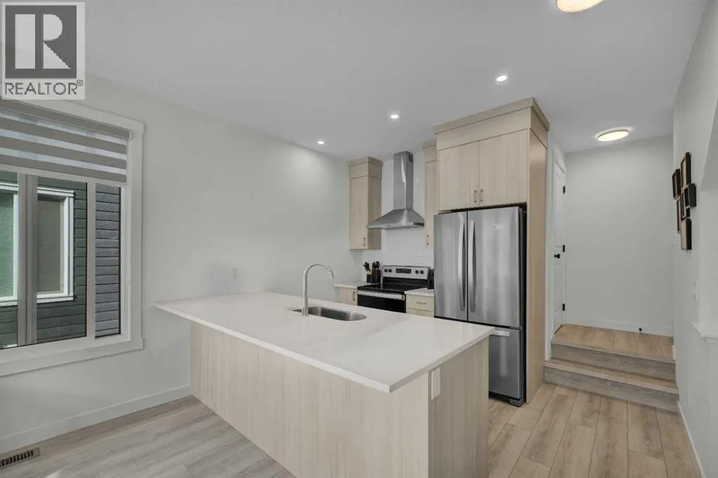 Welcome to this stunning, Hardieboard-clad end-unit in the award-winning community of Seton. Bathed in natural light from additional windows, this home perfectly balances elevated design with everyday practicality. Sophisticated Main Level: The open-concept main floor features 9-ft textured ceilings and massive 8-ft West-facing windows that flood the space with afternoon sun. The chef-inspired kitchen is a true standout, boasting:•Floor-to-ceiling