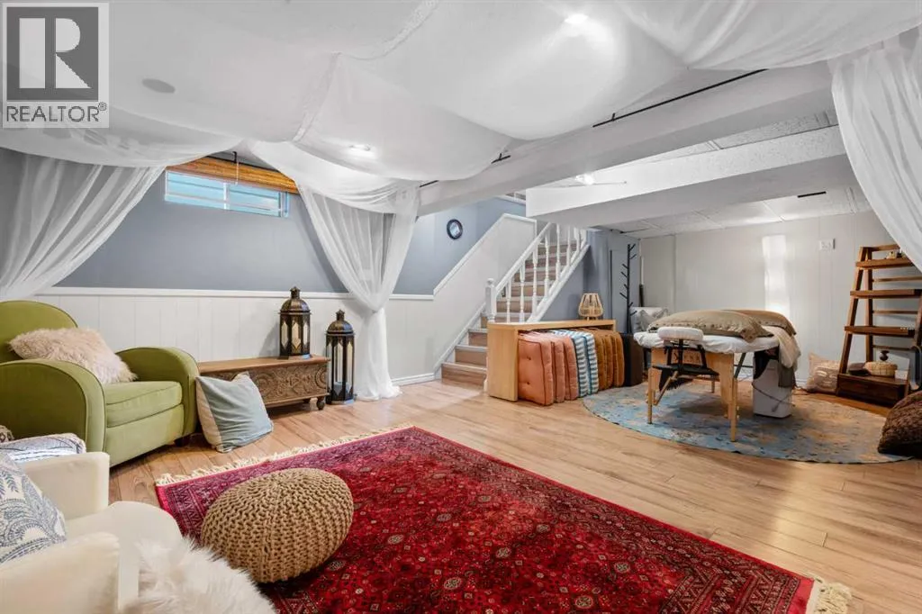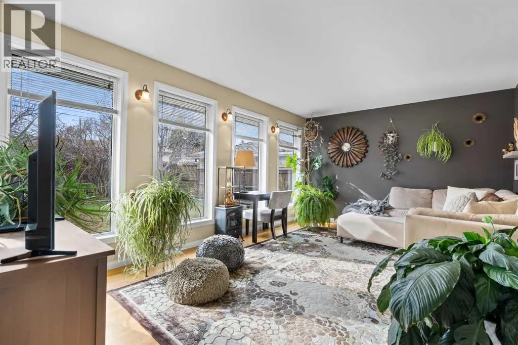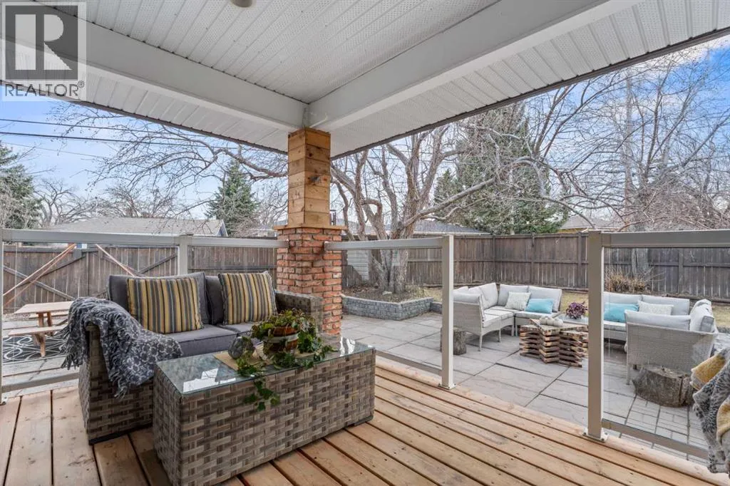 outside your door, and the playground zone helps create a naturally slower pace in front of the home. Instead of looking across at another row of houses, the front of the property enjoys open views, morning light, and a rare sense of space.Set on a generous 7,200 sq ft lot, this bungalow offers more room than many typical lots in the neighbourhood, with a fully fenced backyard, mature trees, established gardens, and multiple outdoor spaces to enjoy. A good-sized front deck provides a welcoming place to take in the open outlook, while the covered rear deck extends the living space into the private west-facing backyard.Inside, the home is bright, warm, and full of personality. The front living room captures the morning light, while the back of the home opens beautifully to the yard through a long stretch of large windows from the kitchen and dining area into the family room. This rear family room is one of the home’s most inviting spaces, with French doors, oversized windows, and a natural connection to the backyard.The kitchen is designed for connection, with a large quartz island, bar seating, quartz countertops, pantry, generous cabinetry, and thoughtful storage. It is the kind of space that works for everyday family life, from quick breakfasts and homework to casual dinners with friends.The main floor includes three bedrooms, including a comfortable primary bedroom with two double closets. Downstairs, the fully developed basement adds a fourth bedroom, full bathroom, and a cozy, flexible retreat with a “Zen Den” feel, ideal for movie nights, play space, guests, or quiet dow ntime.Outside, the backyard feels like a private retreat. Mature trees, perennial gardens, a covered deck with glass railing and heater, fire pit area, patio space, and room for kids, pets, and entertaining all come together beautifully. The oversized heated double garage, RV parking via the side lane, shed, water softener, reverse osmosis system, and recent updates to the furnace, electrical panel, washer, and dishwasher add practical comfort and peace of mind.Wildwood is loved for its strong community feel, access to Edworthy Park, the Bow River pathways, Douglas Fir Trail, nearby schools, playgrounds, and quick routes to downtown and the mountains. For a young family, this is a location that brings school, play, nature, and community into your everyday rhythm.This is more than a house. It is a place where mornings feel brighter, outdoor time comes naturally, and family life has room to grow.Book your private showing and experience what life at 223 45 Street SW could feel like. (id:64429)