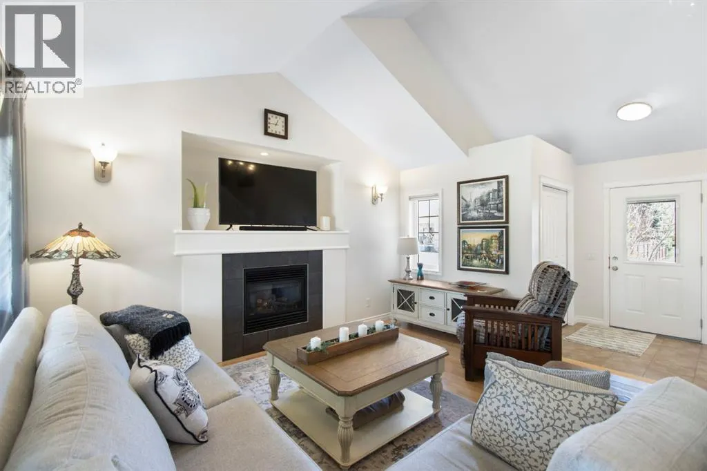 This home shows a “10 out of 10″ and offers nearly 1,700 sq. ft. of pristine, move-in-ready living space. The inviting entry opens into a bright living room featuring hardwood floors, soaring vaulted ceilings, a cozy gas fireplace, and large windows that frame views of the west-facing backyard. The seamless open layout leads to a gourmet kitchen equipped with white
