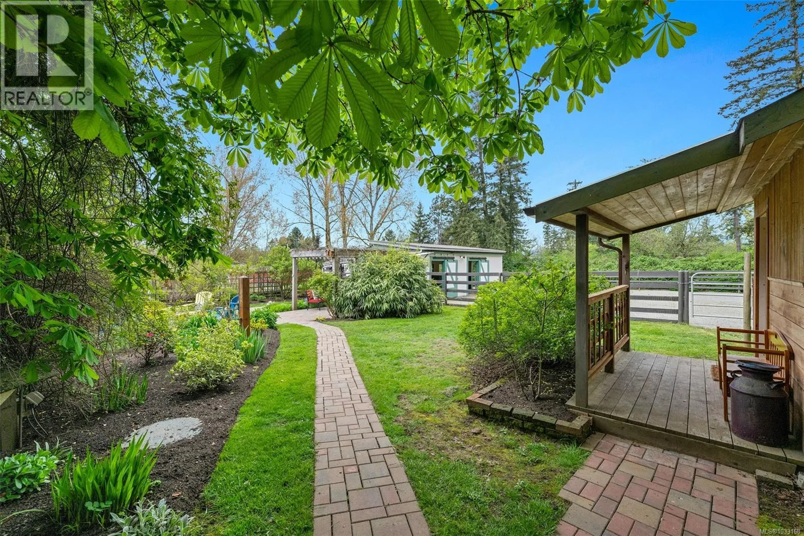 This delightful Hobby Farm is a dream come true for many reasons. It’s situated in a prime area of Central Saanich with a handsome home of character and style surrounded by an array of gardens, workshop, a 3-stall barn, 2 paddocks – one gravel, one grass, separate artist studio/office, covered dining patio with an amazing brick pizza/bread oven, lots of