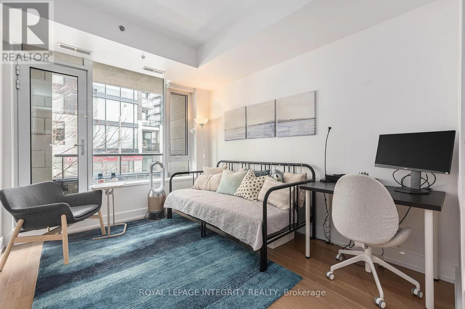 Ideally located in the heart of Westboro, this bright and modern 1-bedroom condo offers a stylish and functional living space. The open-concept layout is complemented by high ceilings, hardwood floors, and oversized windows that fill the space with natural light. A cozy balcony extends the living area, providing an outdoor space to enjoy the surroundings.The contemporary kitchen is designed for