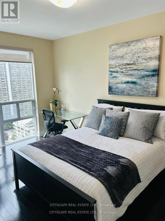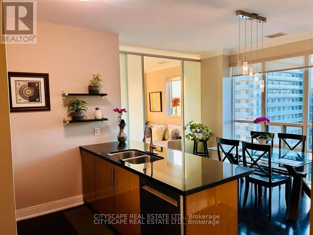 Penthouse living with stunning, unobstructed NW views from every room. This bright, spacious 2-bedroom suite features 10-ft ceilings, a private foyer, and a beautifully designed open-concept living/dining area. The generous primary bedroom offers a walk-in closet and ensuite, while a custom Murphy bed creates a flexible third sleeping space. Thoughtfully upgraded with hardwood flooring throughout, crown moulding, and modernized bathrooms.