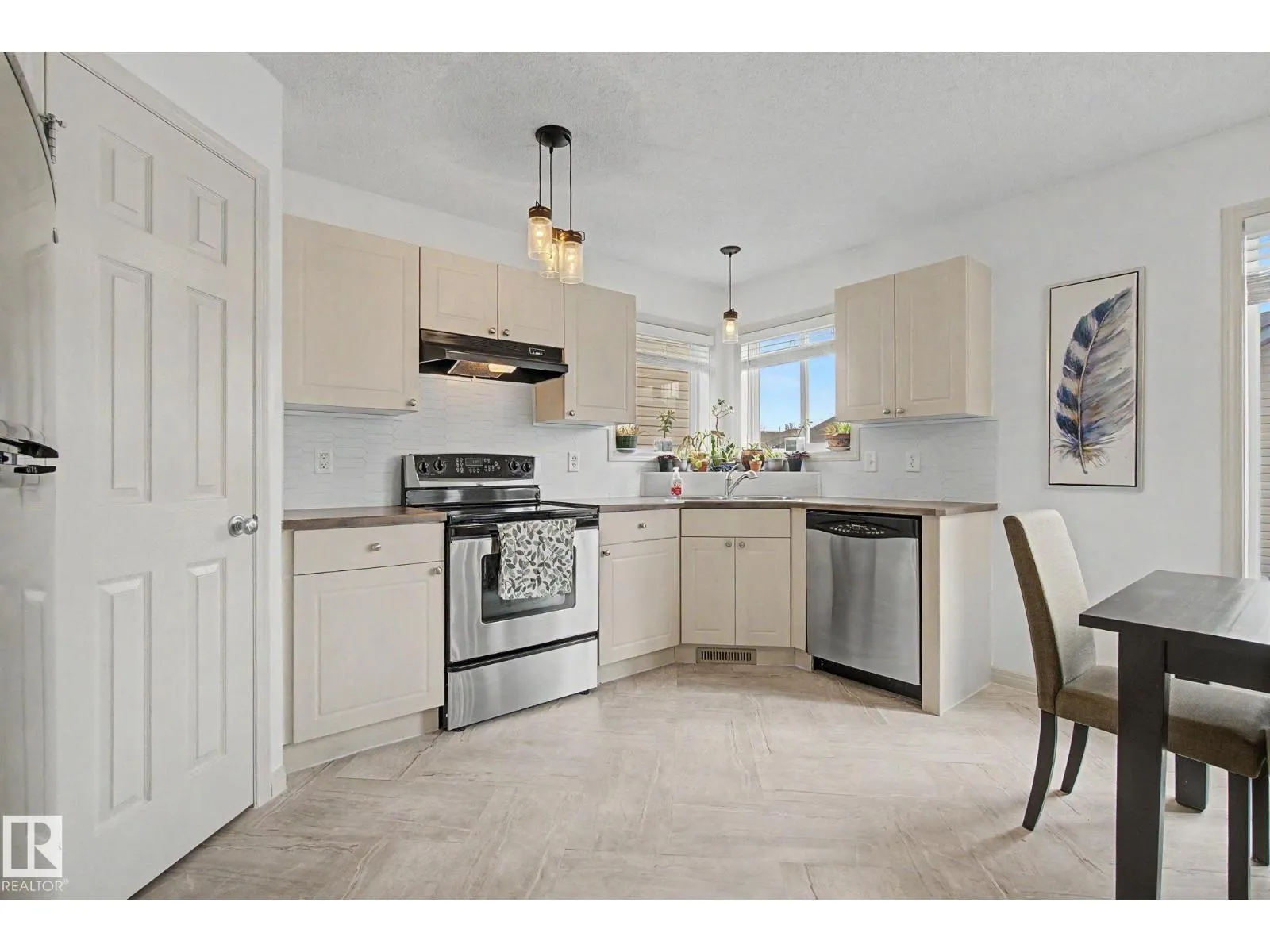 Feel at home the moment you walk through the door of this beautiful 2-storey in West Edmonton! Almost 1300 sq ft in this picture perfect property. Large front entry with room for everyone to take off jackets & shoes. Big front living room with great hardwood floors! Large kitchen space with good cabinets, corner pantry & corner sink. Dining area