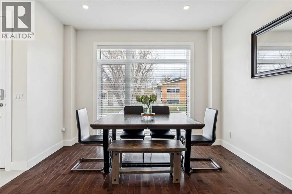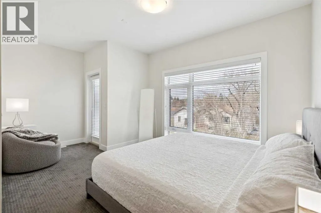 Welcome to this modern 3-bedroom townhome in the coveted inner-city community of Parkhill, the urban professional’s address. Striking curb appeal sets the tone, with 9-ft ceilings and large windows flooding the open-concept main floor with natural light. The contemporary kitchen features quartz countertops, tile backsplash, stainless steel appliance package, built-in pantry, upgraded lighting, and plenty of cabinet space, flowing into