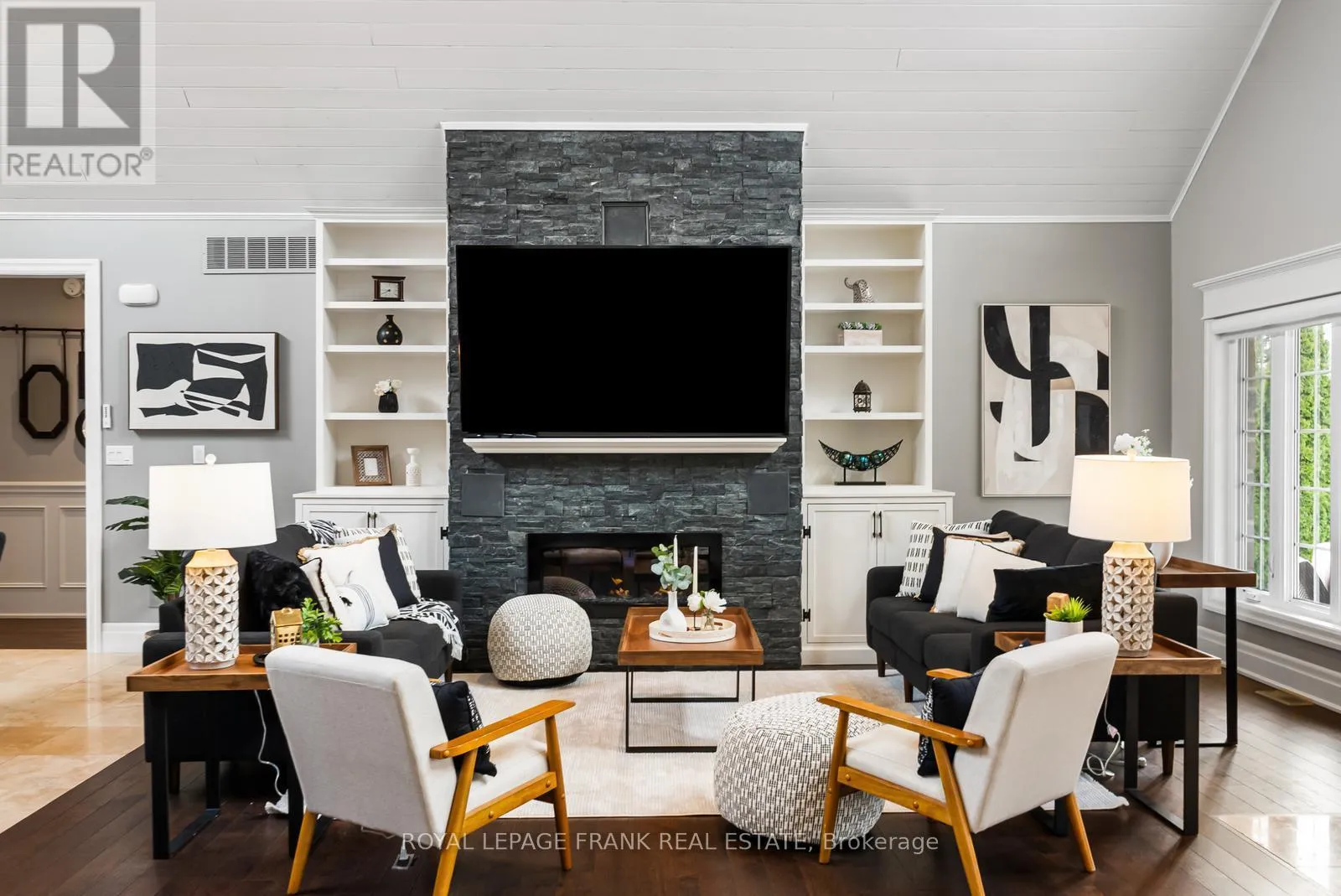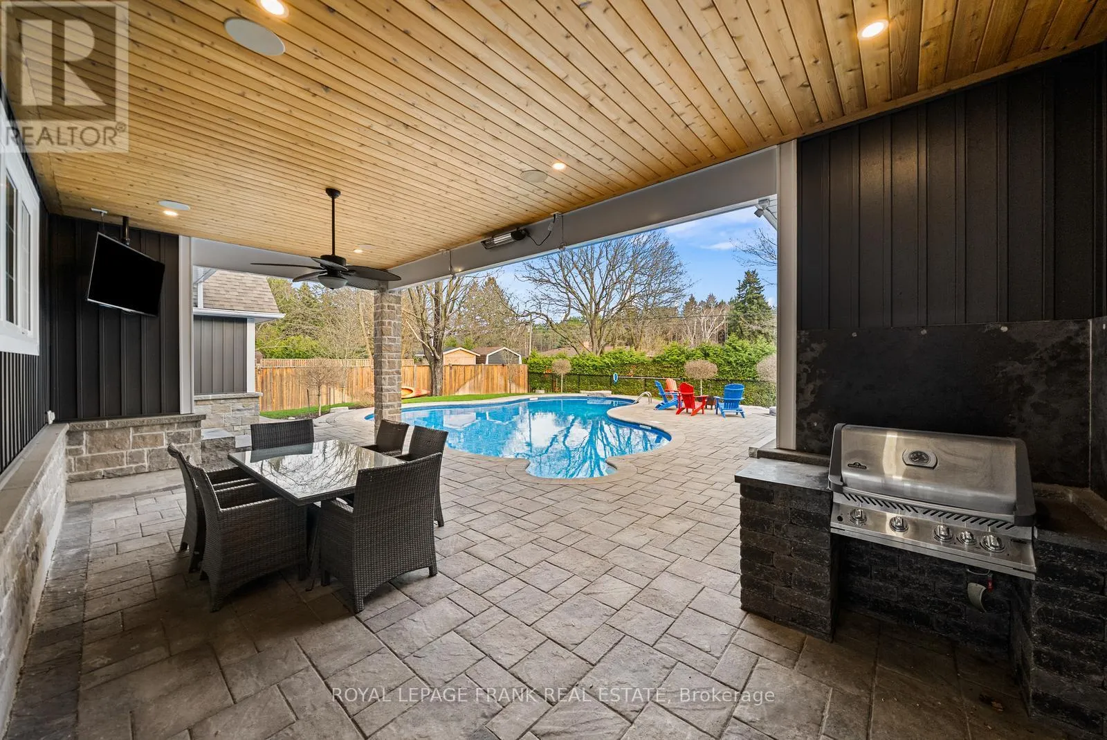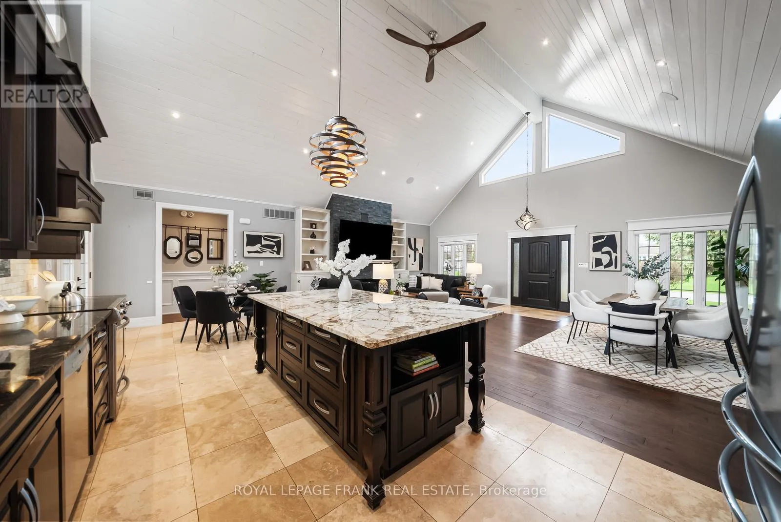 Welcome to an extraordinary, masterfully crafted bungalow offering over 5,300 square feet of impeccably refined living space. Set on an expansive 100′ x 150′ private estate lot, the residence is complemented by a resort-inspired backyard oasis, showcasing a lagoon-style heated saltwater pool and hot tub enveloped by professionally curated landscaping. A triple-wide, extended driveway accommodates up to 12 vehicles, in