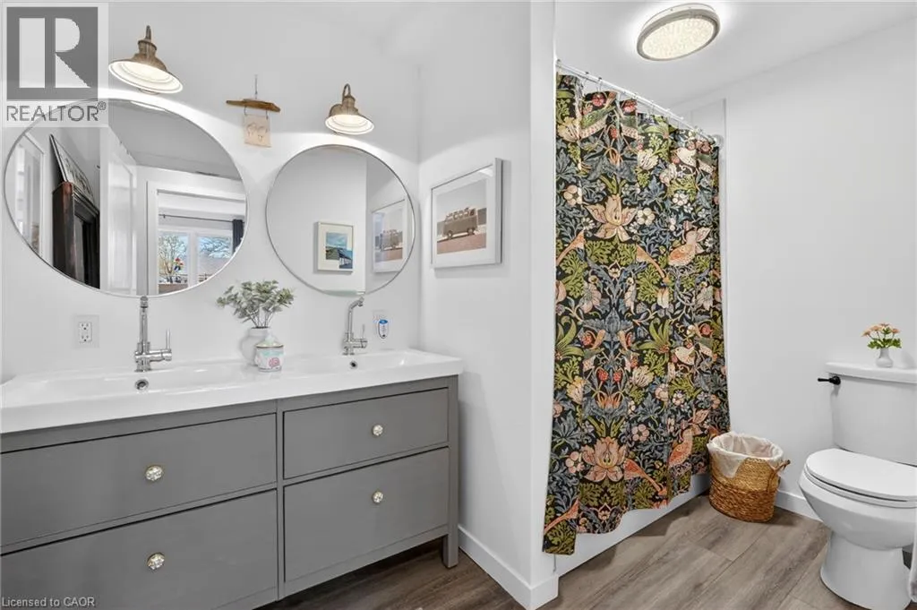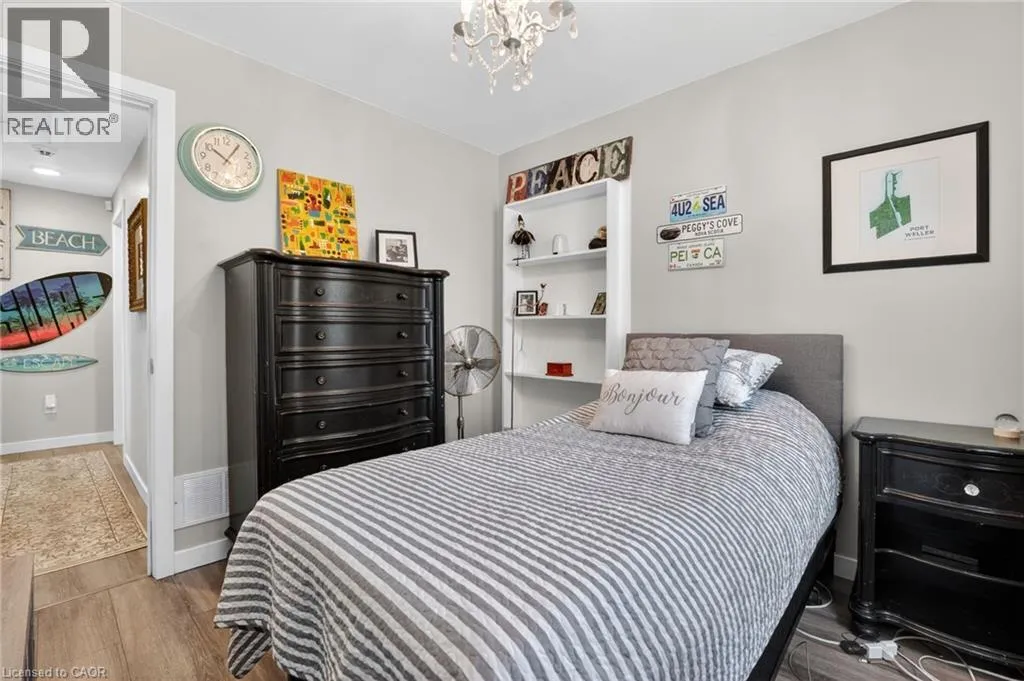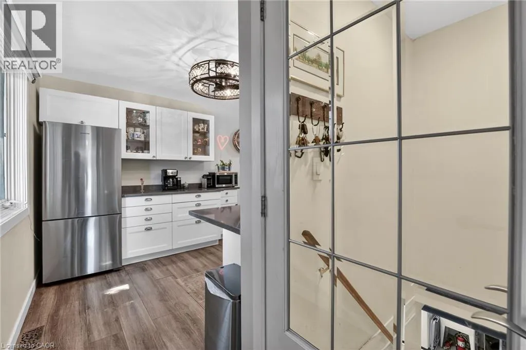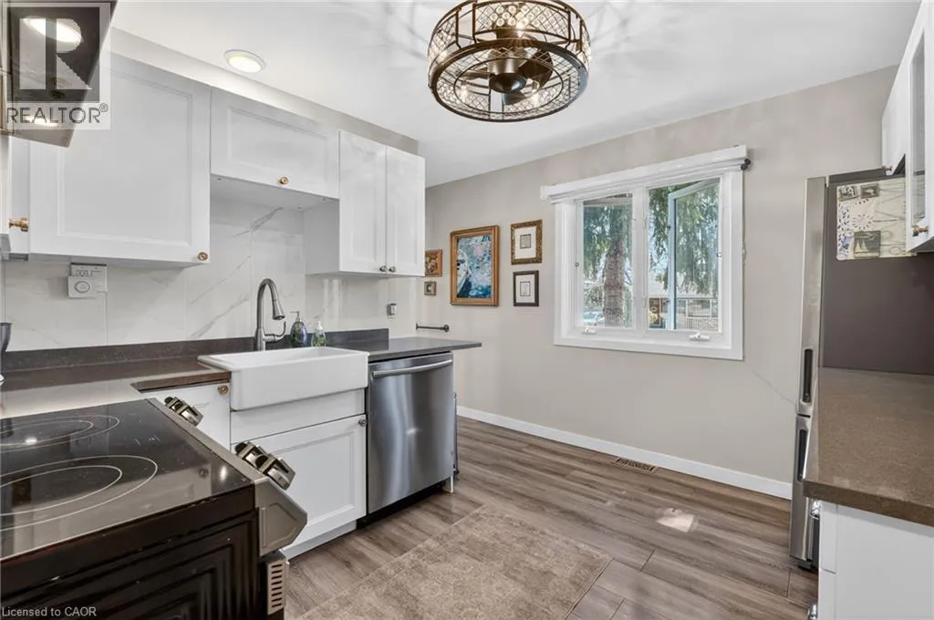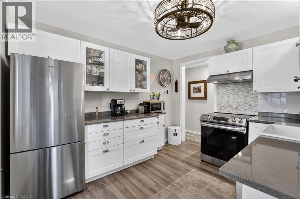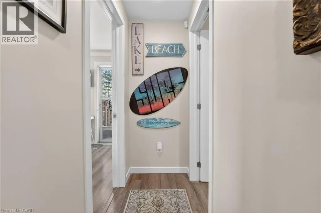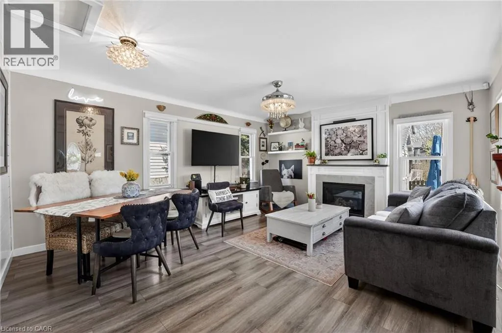 This delightful 2+1 bedroom home in Port Weller sits just blocks from the revitalized Sunset Beach on the shores of Lake Ontario, and the scenic Waterfront Trail. Thoughtfully updated with cottage-inspired décor, the home welcomes you through a robin’s-egg-blue side door that opens into the inviting living/dining rooms. Here, a shiplapped feature wall, a cozy gas fireplace, and abundant natural