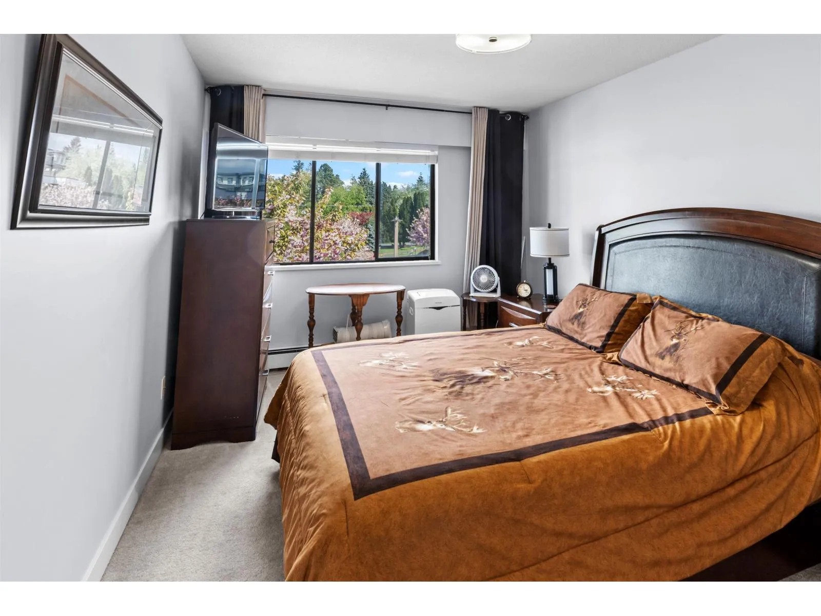 Welcome to Alameda Court – where comfort meets convenience! This beautifully updated top floor 2 bedroom & 1 bathroom unit offers a bright, east-facing exposure with serene views that invite peaceful mornings and an abundance of natural light. Thoughtfully renovated throughout, the home features modern laminate flooring, plush newer carpet, and a stylish bathroom with tiled shower and floating vanity.