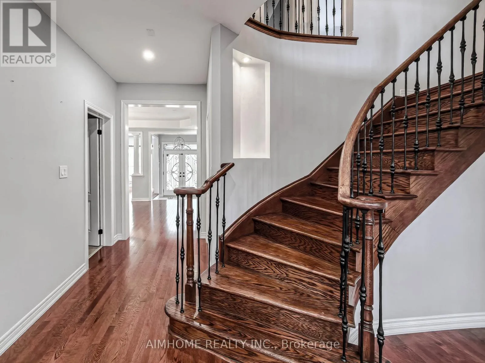 Exceptional luxury home in a quiet, family-friendly community, beautifully upgraded and tastefully finished throughout. Features a grand double-door entry with ceramic foyer, hardwood floors throughout, oak staircase with iron pickets, and a stunning 17-foot open-to-above family room. Enjoy an upgraded fireplace mantel, skylight, pot lights, art niche, decorative Roman columns, and a coffered ceiling in the dining room. The gourmet