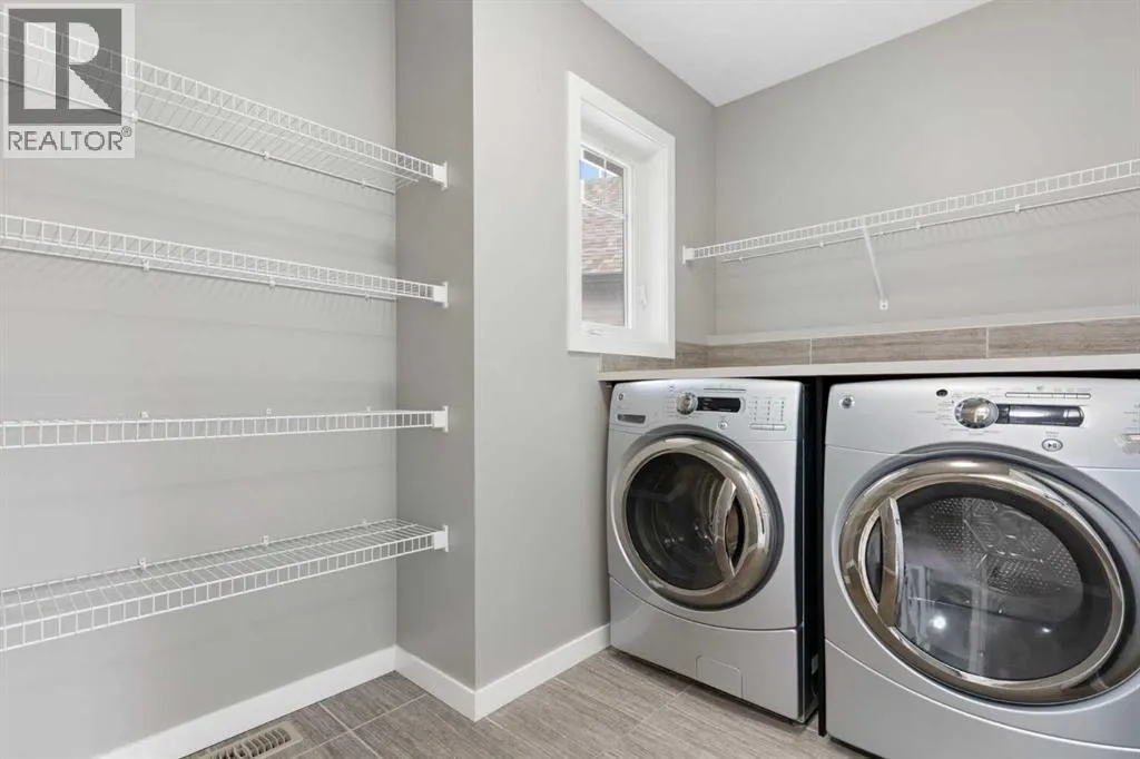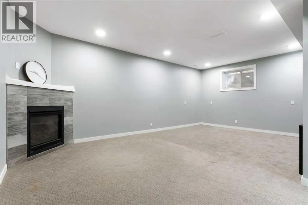 that opens into a stunning open-concept main floor. The kitchen is equipped with quartz countertops throughout, full-height cabinetry, stainless steel appliances, fridge with icemaker/water a mini bar fridge, and a convenient coffee/dry bar. A spacious central island and walk-through pantry offer both beauty and practicality, making this space ideal for entertaining and daily living. The adjacent dining area flows seamlessly onto the newly stained deck, complete with a gas line for summer BBQs.The living room is flooded with natural light and anchored by a cozy gas fireplace with custom built-ins, creating an inviting atmosphere for relaxing evenings. Thoughtful details like motion sensor stair lighting, art niche lighting, and up/down combo blinds throughout the home elevate both ambiance and convenience. A stylish 2-piece powder room completes the main level.Upstairs, a stunning bonus room with a tray ceiling and custom French doors offers the perfect retreat for movie nights, a playroom, or a home office. Skylights flood the upper level with natural light, enhancing the airy feel throughout. The spacious primary suite provides a private escape, complemented by a luxurious ensuite with a large soaker tub, dual sinks, shower and walk-in closet. Two additional bedrooms, a full bathroom, and a well-designed upper laundry room round out this level.The fully developed basement features impressive 9-foot ceilings, creating an open and comfortable extension of the home. Designed for both relaxation and function, this level includes a beautiful Napoleon gas fireplace with an auto thermostat, custom built-ins for a library, an additional bedroom, and a full bathroom. Step outside to your own private backyard. The expansive pie-shaped lot showcases a thoughtfully designed outdoor space with a stone patio, raised garden bed, a stone patio, and a storage shed. The double attached garage is equally impressive, featuring upgraded doors with windows and built-in shelving for optimal organization. Plus an included garage fridge.Located close to parks, pathways, schools, shopping, and amenities, this exceptional home offers the perfect balance of comfort, style, and convenience. A rare opportunity to own a meticulously maintained and upgraded property in one of NW Calgary’s most sought-after communities. Additional updates: New Shingles 2025, New LED lighting. (id:62650)