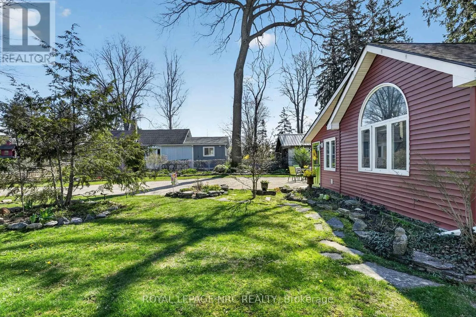 This is a well-cared-for, 1,066-square-foot bungalow located on a quiet street on the edge of Crystal Beach and Ridgeway. Situated on a generous 78-foot by 123-foot lot, the property feels like a private park. The grounds have been thoughtfully landscaped for those who enjoy gardening, featuring a large flagstone patio for outdoor seating and a clean, interlocking brick driveway. The