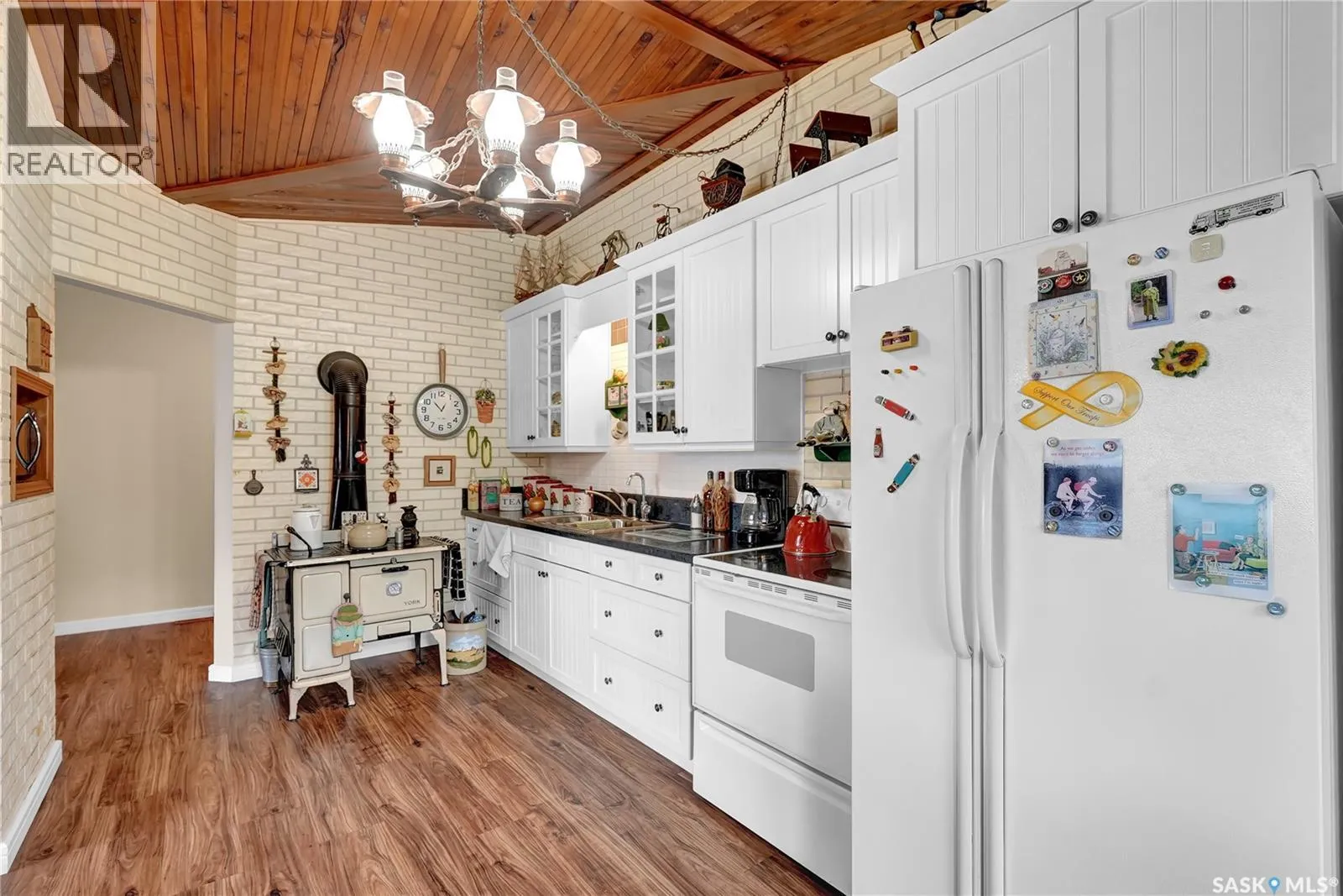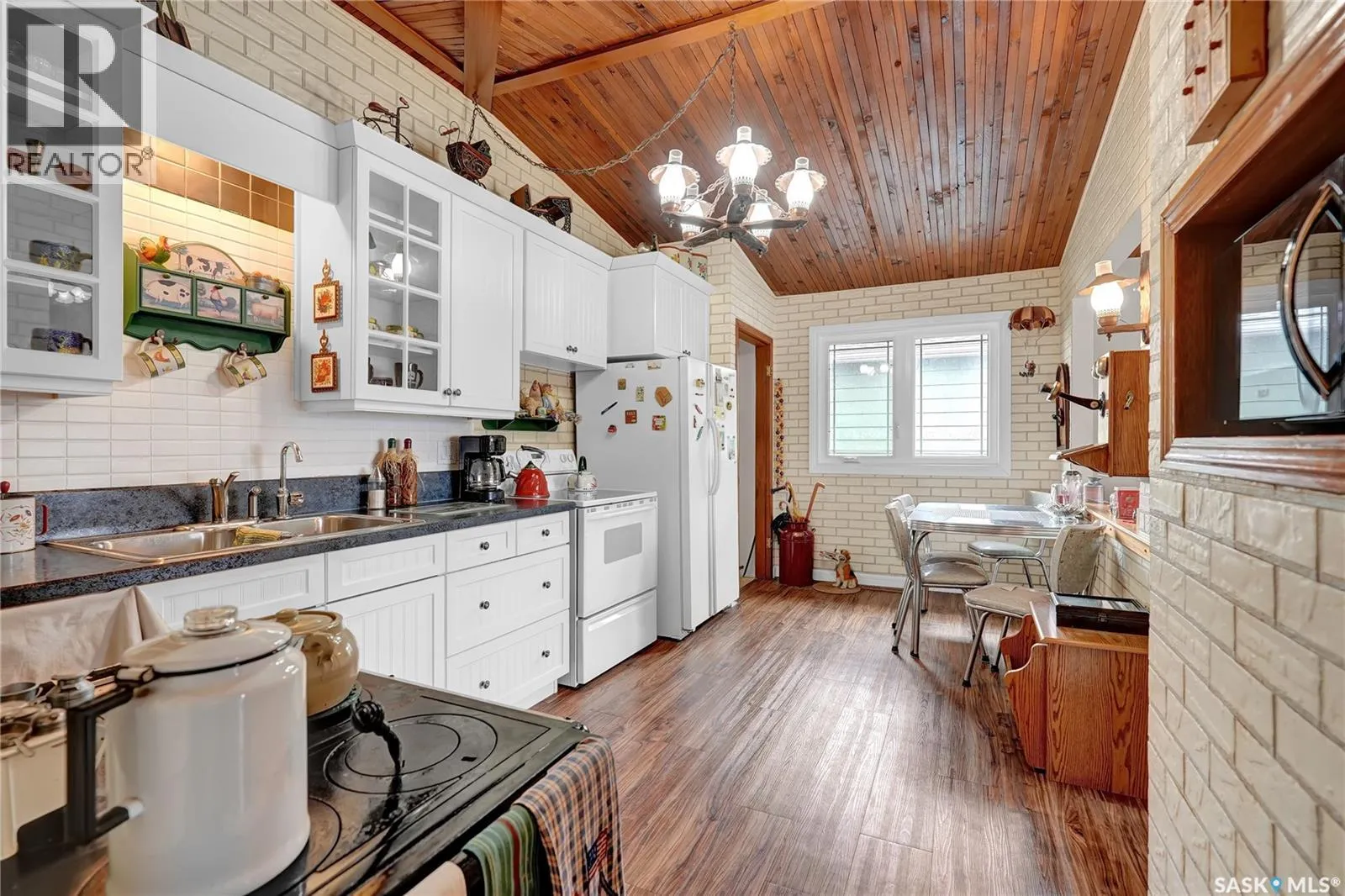Excellent location on a quiet street backing onto open space, this well-maintained three-bedroom bungalow offers both comfort and potential. The bright, spacious living room features vaulted ceilings, creating an airy and inviting atmosphere. The kitchen is equipped with white cabinetry, fridge, stove, and a decorative stove. All bedrooms also showcase vaulted ceilings and updated PVC windows. The insulated basement includes