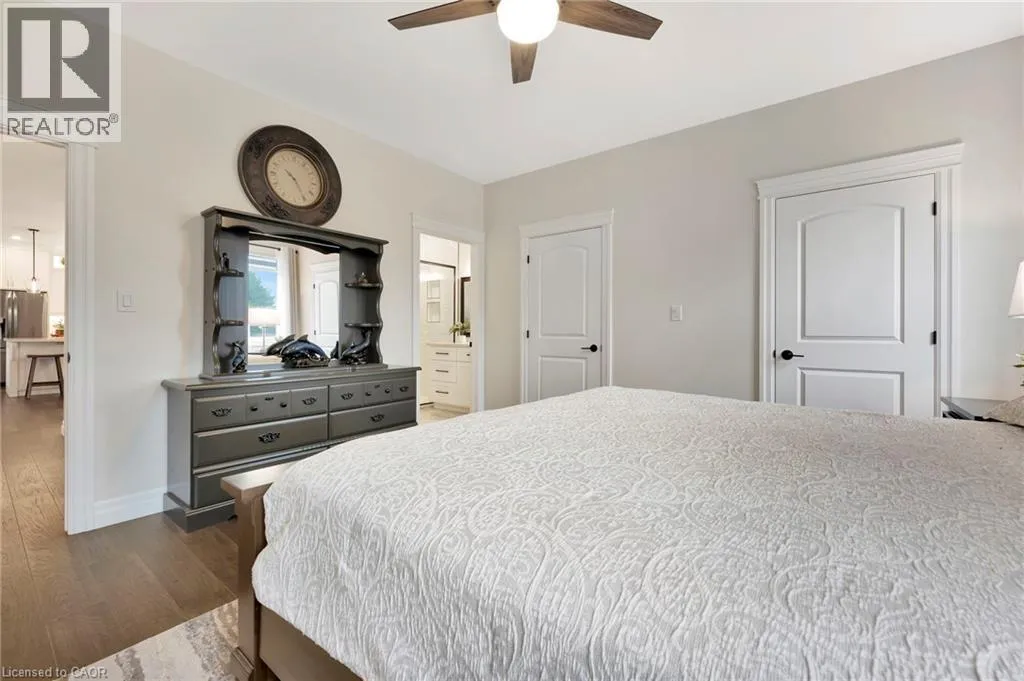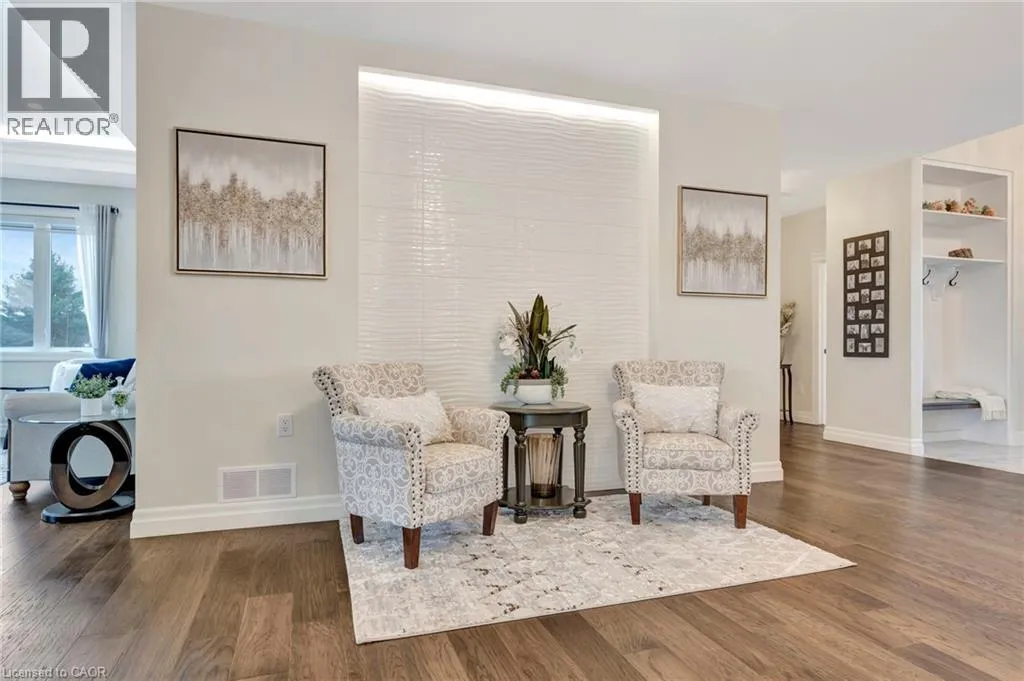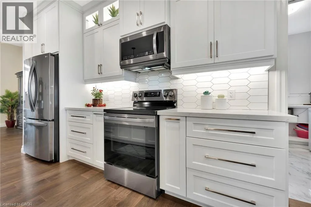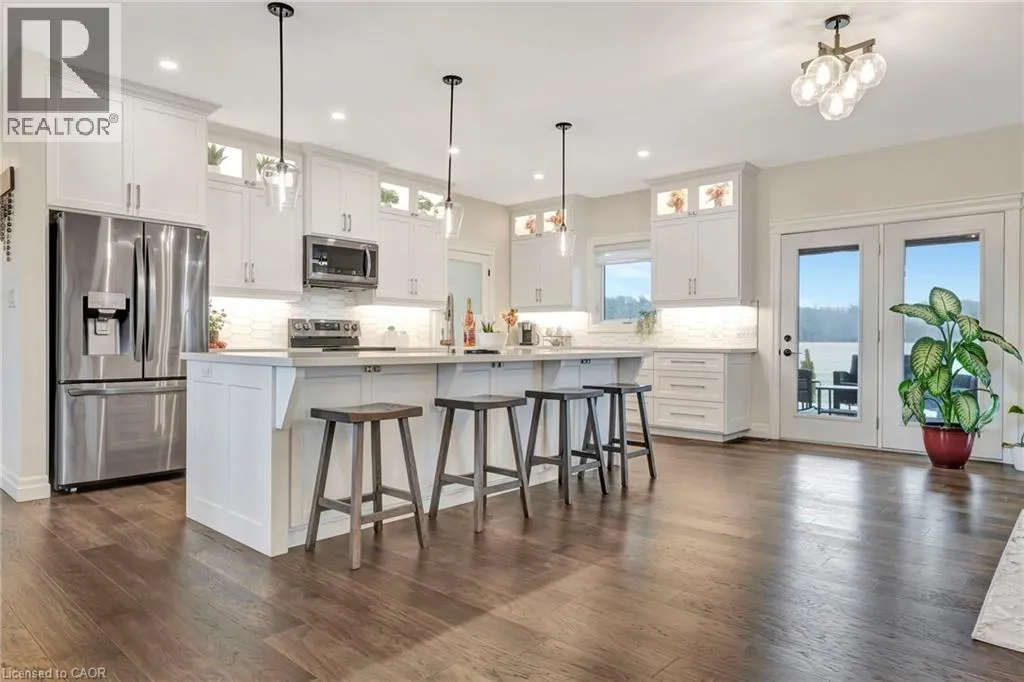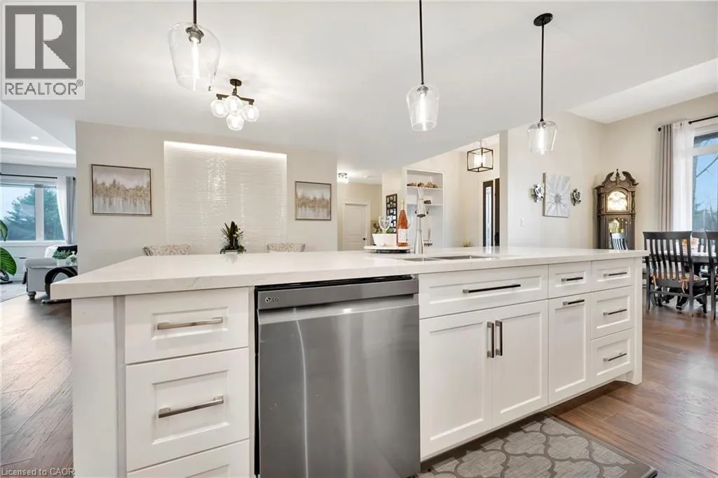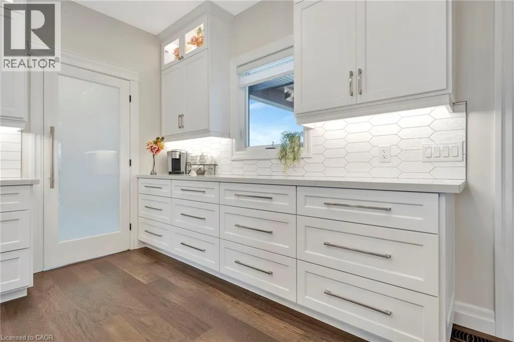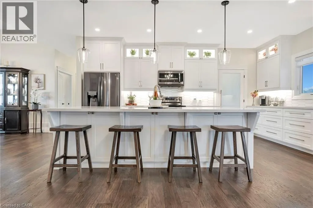 Picture yourself coming home to this stunning sprawling bungalow, perfectly situated on 0.91 acres of peaceful, tree-lined property with picturesque views of open fields and a neighboring cash crop backdrop. Step inside and you’ll find a home that feels straight out of a magazine, where every detail has been thoughtfully designed. The bright white kitchen is a true showpiece, featuring