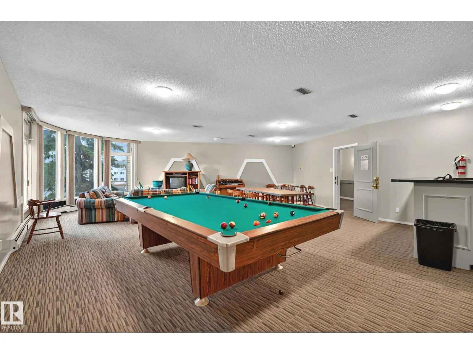 RARE 3 BEDROOM 2 FULL BATHROOM MAIN FLOOR UNIT WITH 2 PARKING STALLS! The building also features an incredible indoor pool & hot tub area (which has undergone recent improvements), sauna, & social/billiards room. This convenient main floor unit offers a large living room area & dining room that open to the relaxing patio facing greenspace. The primary bedroom features