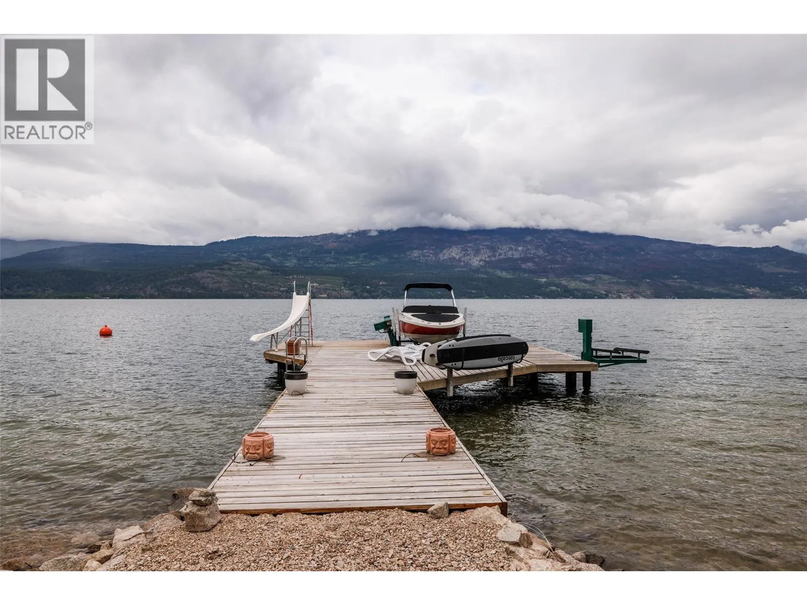Dip your toes in the lake a mere 40ft from your front door! This lakeshore home is only 18 years old and sits on nearly 100ft of beautiful and private pebbled beach lakeshore. Enjoy your time floating on the water or sunbathing on the 60ft licensed dock with boat lift & wiring for a jet ski lift. Great depth for