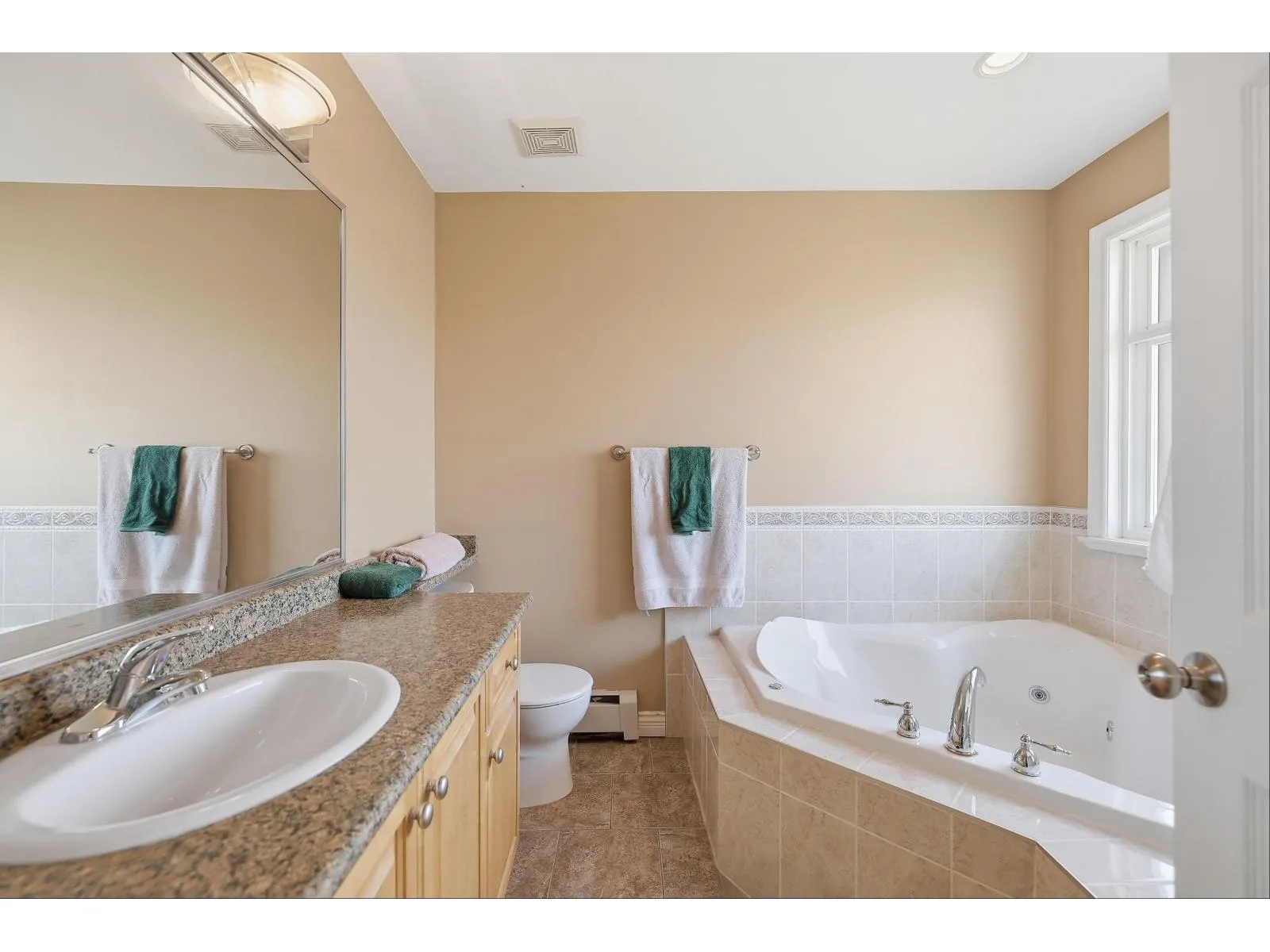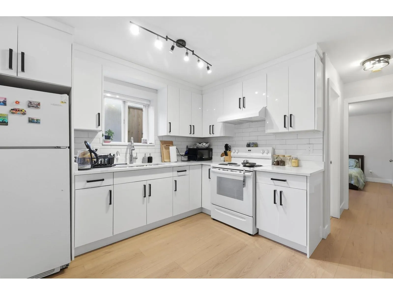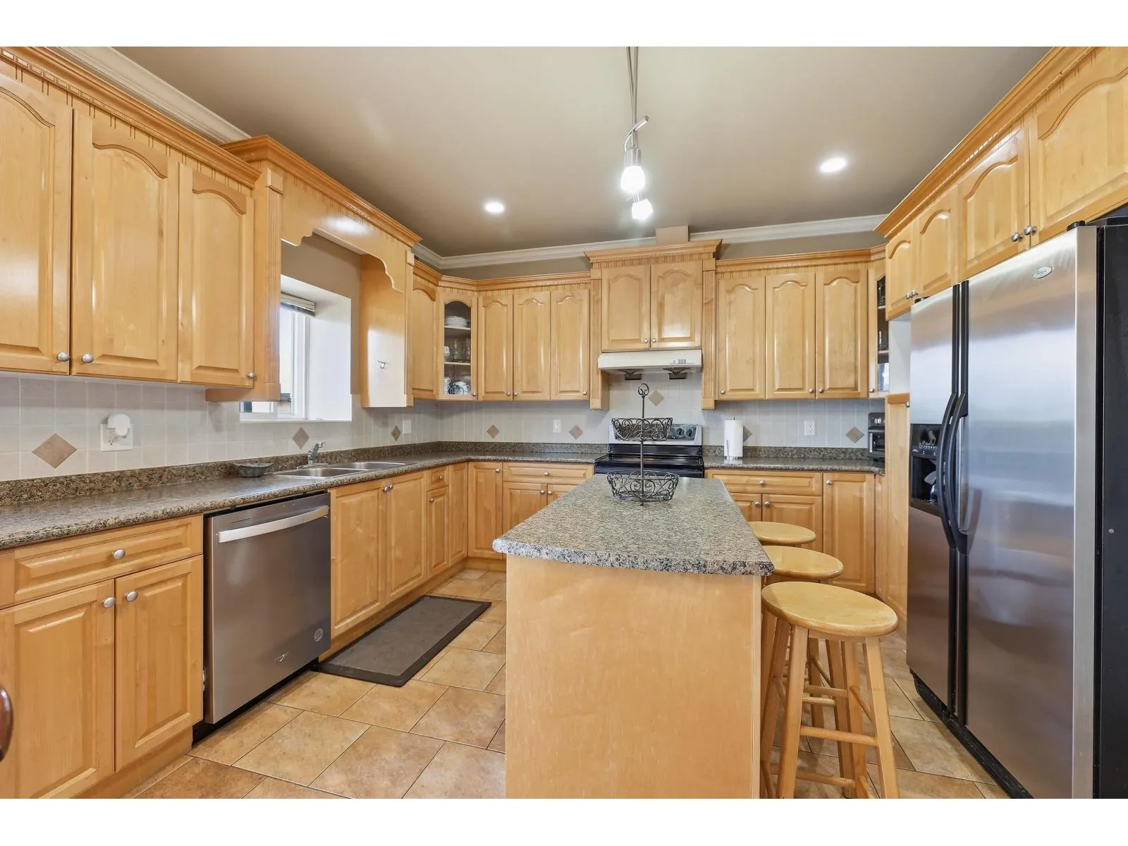 This three-storey family home features four bedrooms and three bathrooms on the upper level, with a main level that showcases maple hardwood floors, a kitchen with maple cabinetry, and a spice kitchen with a gas stove. The living, dining, and den areas flow together, and there is an eat-in area adjacent to the spacious family room. The basement is fully