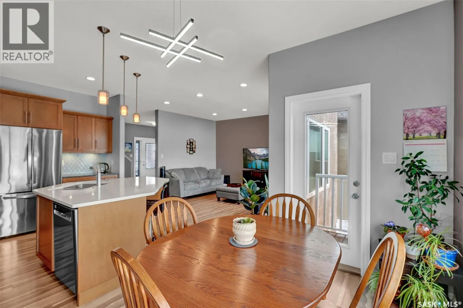 Welcome to this beautifully maintained two storey home located on a quiet crescent. Upon entering, you’re greeted by a spacious foyer with 9 foot ceilings. Stylish laminate flooring flows throughout the main living area, leading into the bright & inviting living room and kitchen. The stunning maple kitchen features custom tile backsplash, under cabinet lighting, dual undermount sink, stainless steel