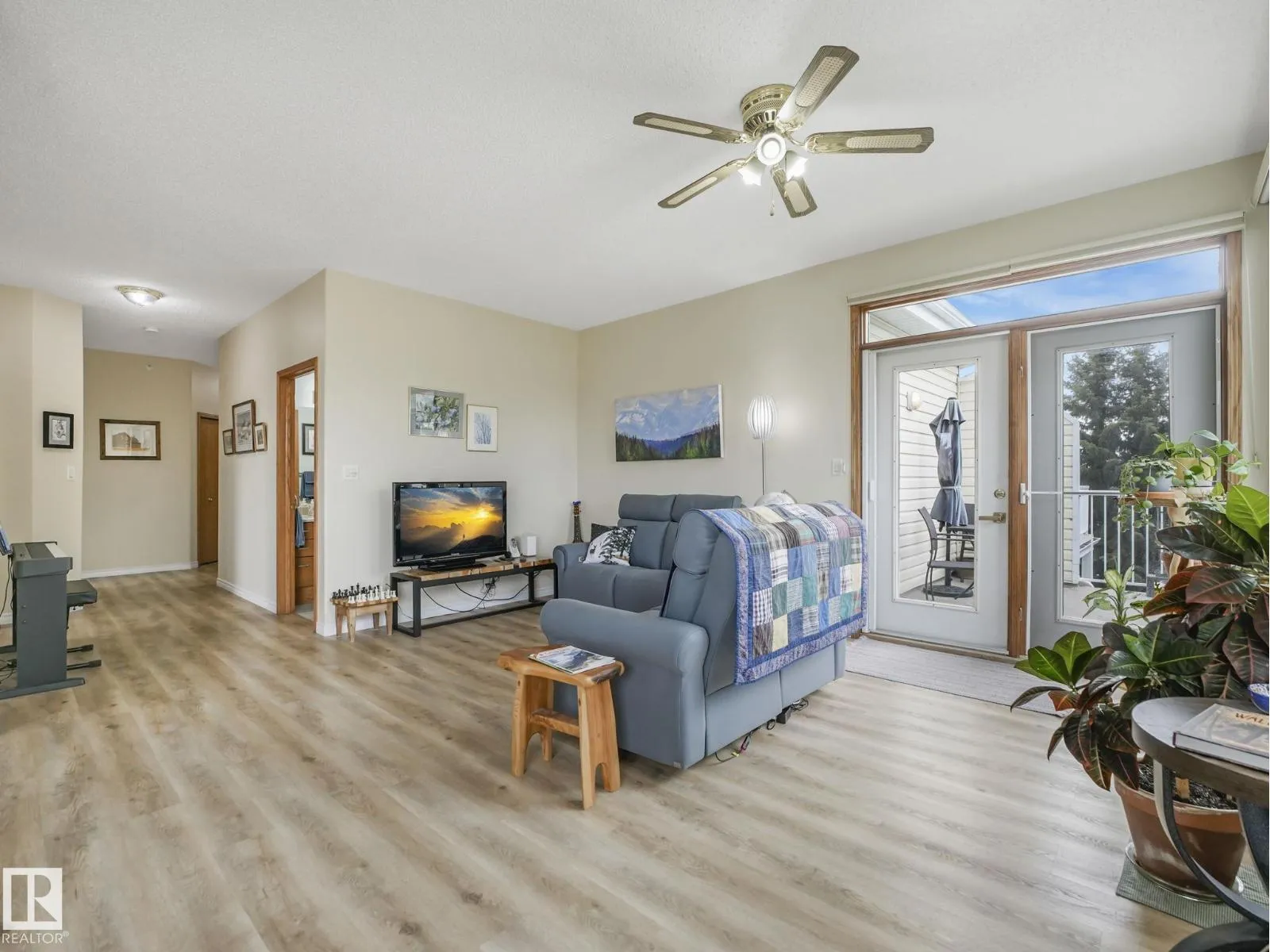 Top-floor, open-concept unit with a true penthouse feel. One of the largest in the building, featuring 10-ft ceilings and large windows that fill the space with natural light. Two-bedroom layout includes a spacious primary suite with a 3-pc ensuite, walk-in closet, and private den, ideal for a home office, craft rm, reading space or a large walk in closet.