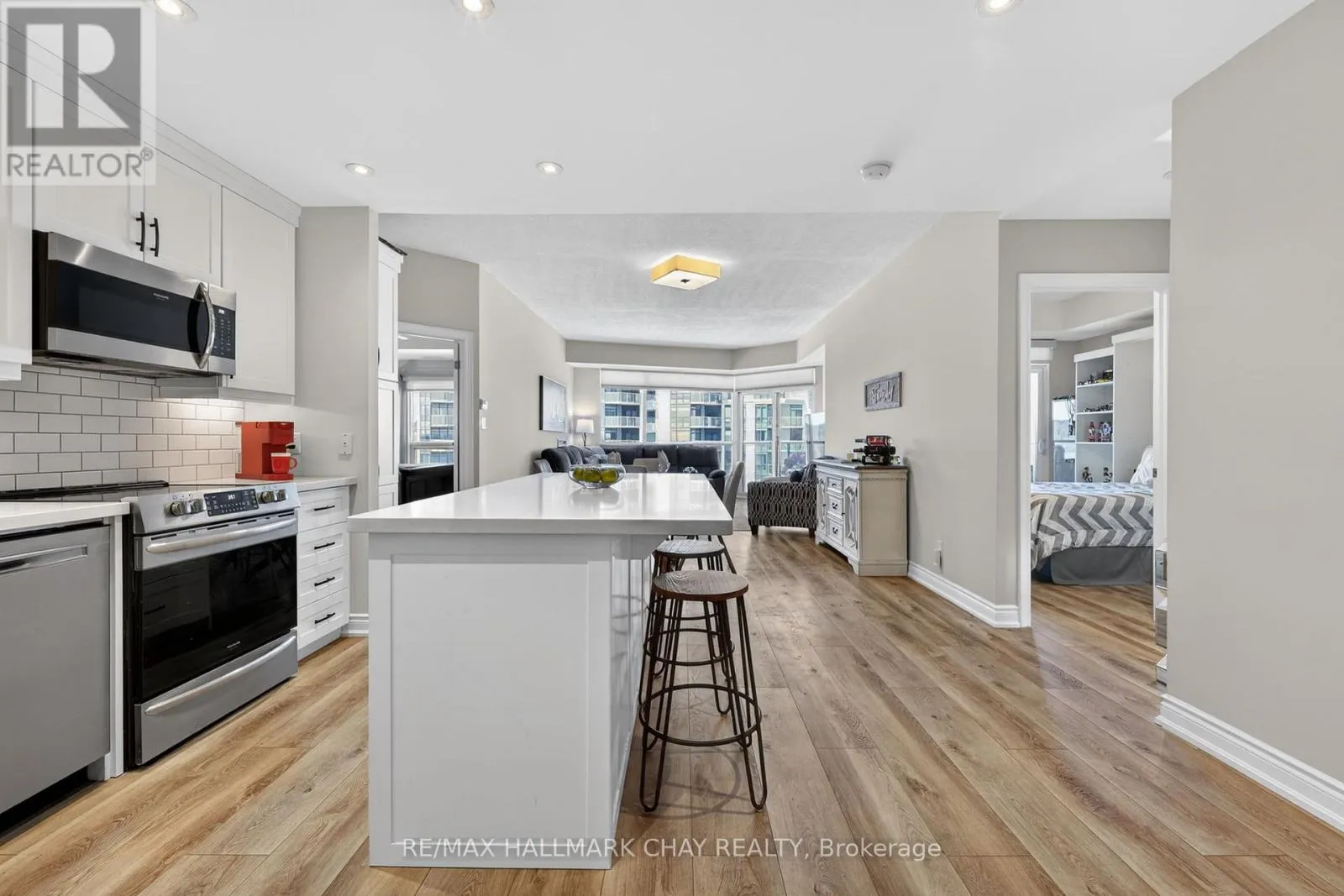 Welcome To This Inviting Waterfront-Inspired Residence Overlooking Barrie’s Kempenfelt Bay. This Beautifully Renovated Bimini Model In The Highly Sought-After Nautica Community Offers A Warm Blend Of Comfort, Quality, & Scenic Living. Ideally Positioned Across From The Waterfront, This 8th-Floor Suite Showcases Beautiful Views Of Kempenfelt Bay, The Marina, & Barrie’s Downtown Skyline.This Bright & Welcoming 2-Bedroom, 2-Bathroom Split-Layout Suite Features