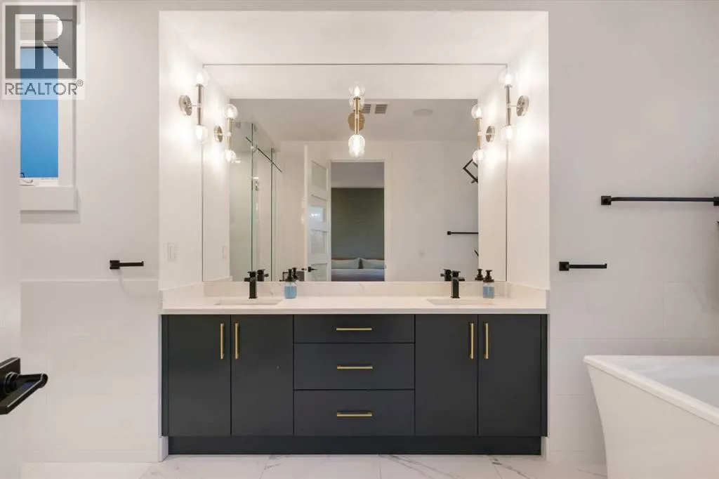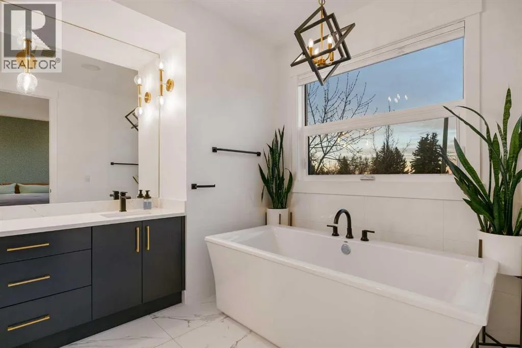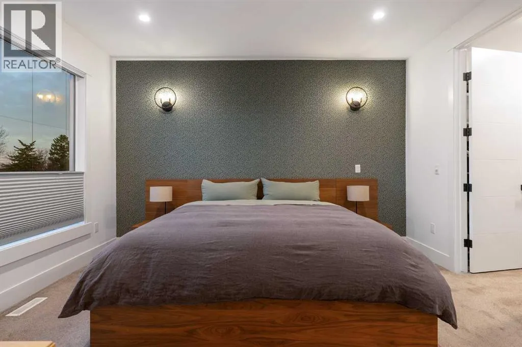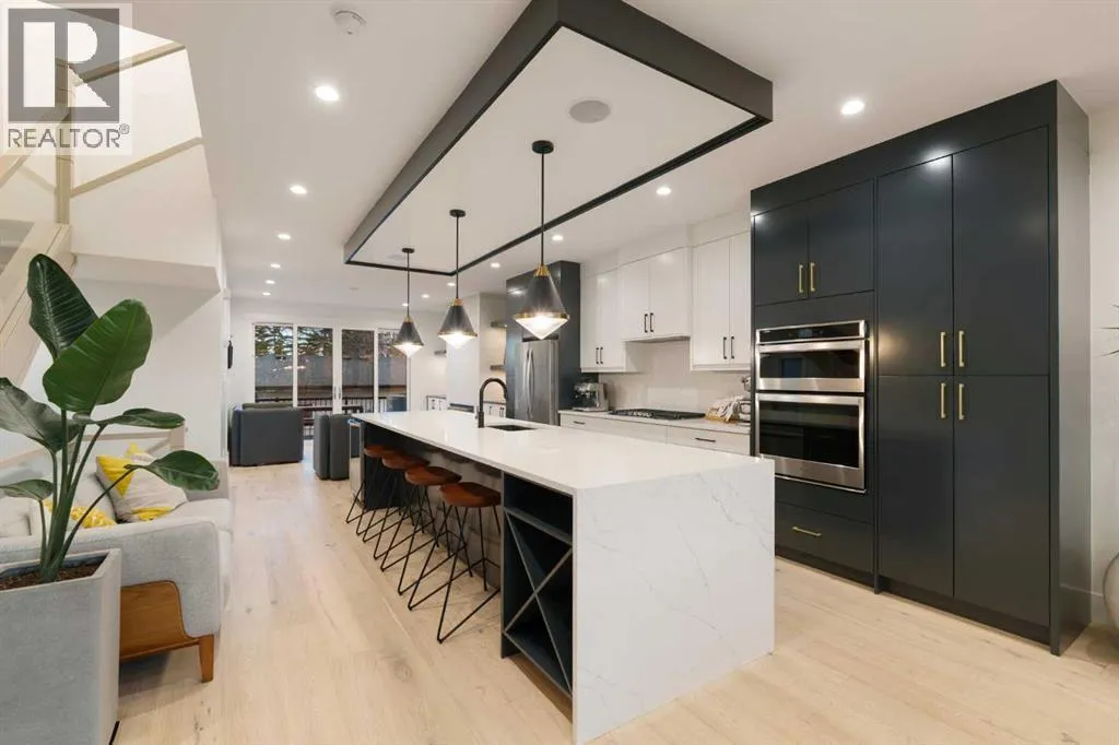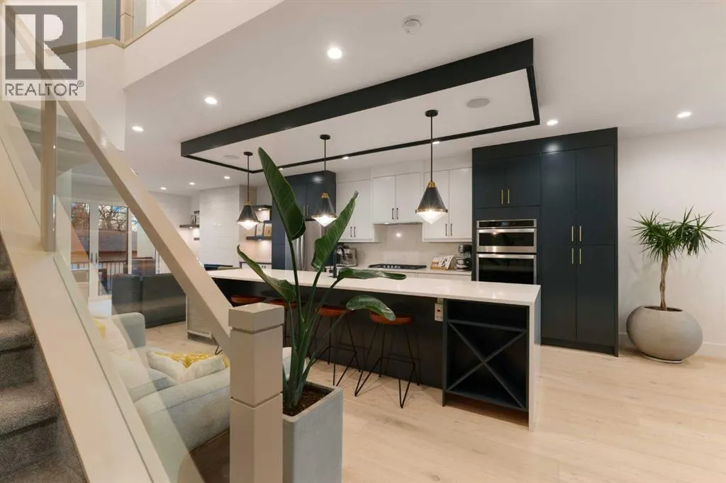 Step into a refined blend of contemporary design and timeless warmth. This beautifully crafted inner city home features wide-plank oak hardwood, painted ceilings, custom millwork, designer wallpaper, central A/C, a skylight that fills the space with natural light, plus a water softener and heat recovery ventilation system for enhanced comfort.The open-concept main floor is anchored by a chef-inspired kitchen
