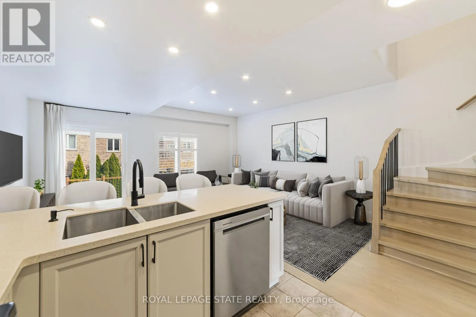 Welcome home to 92 Benziger Lane! This beautifully updated home, thoughtfully designed to combine modern style with everyday comfort. The main level showcases refinished hardwood floors, a refinished staircase, flat ceilings, and pot lights throughout, creating a bright and contemporary ambiance. A stone-look tiled entryway offers a warm and welcoming first impression. The airy, open-concept kitchen is equipped with stainless
