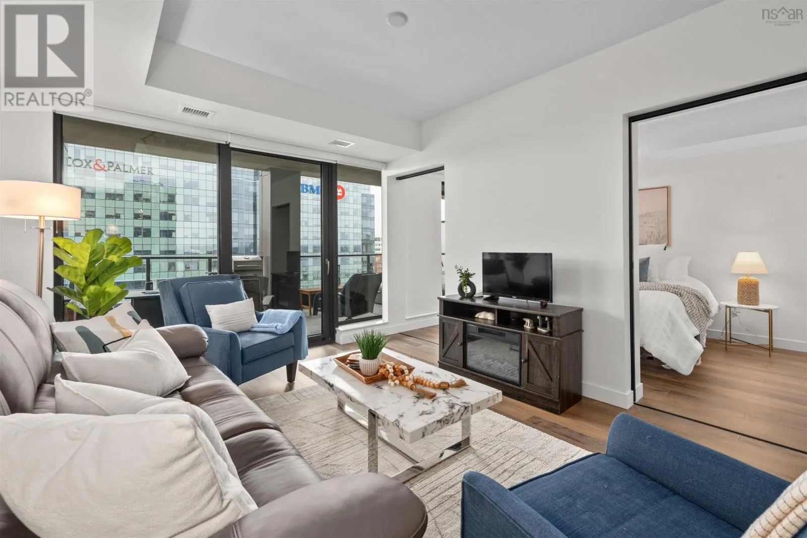Welcome to unit 1501 at The Roy, where modern urban living meets convienece in the heart of downtown Halifax. This 2 bedroom, 2 bathroom plus den condo spans 945 square feet and features a thoughtful layout designed for both comfort and style. Floor to ceiling windows fill the space with natural light while the oversized balcony extends your living area