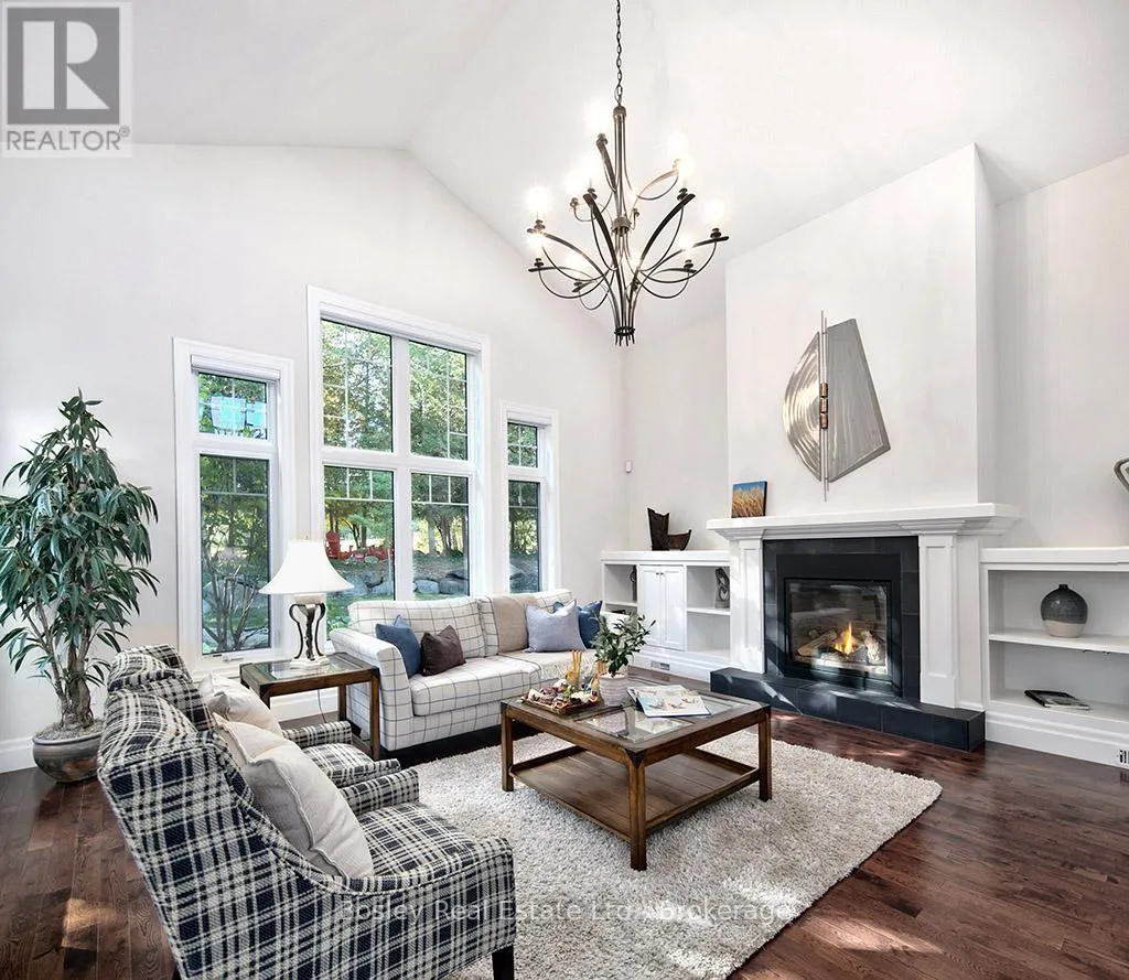 Introducing a stunning 5-bedroom custom residence by renowned builder Dezign2000, perfectly situated in the exclusive Lora Bay community. Backing onto the driving range and surrounded by mature trees and landscaped gardens, this home offers luxurious seclusion and refined living. Inside, wide-plank oak floors, soaring ceilings, and timeless design set the tone. The gourmet kitchen features white shaker cabinetry, granite counters,