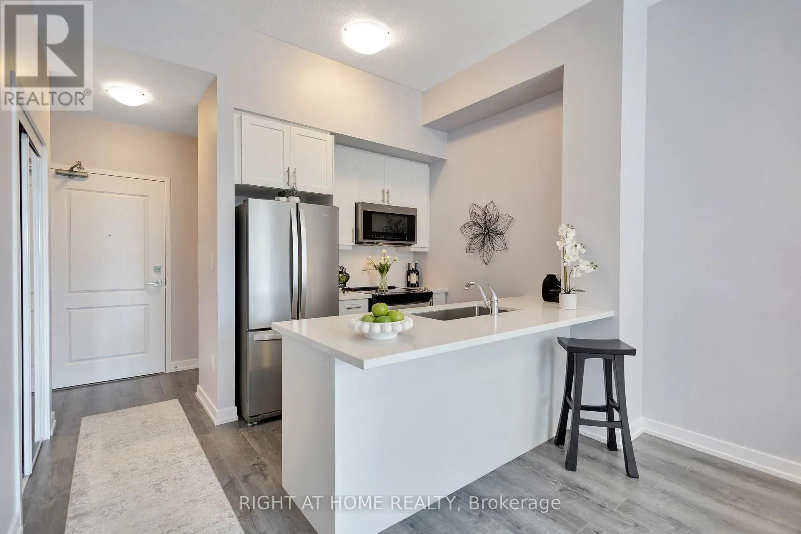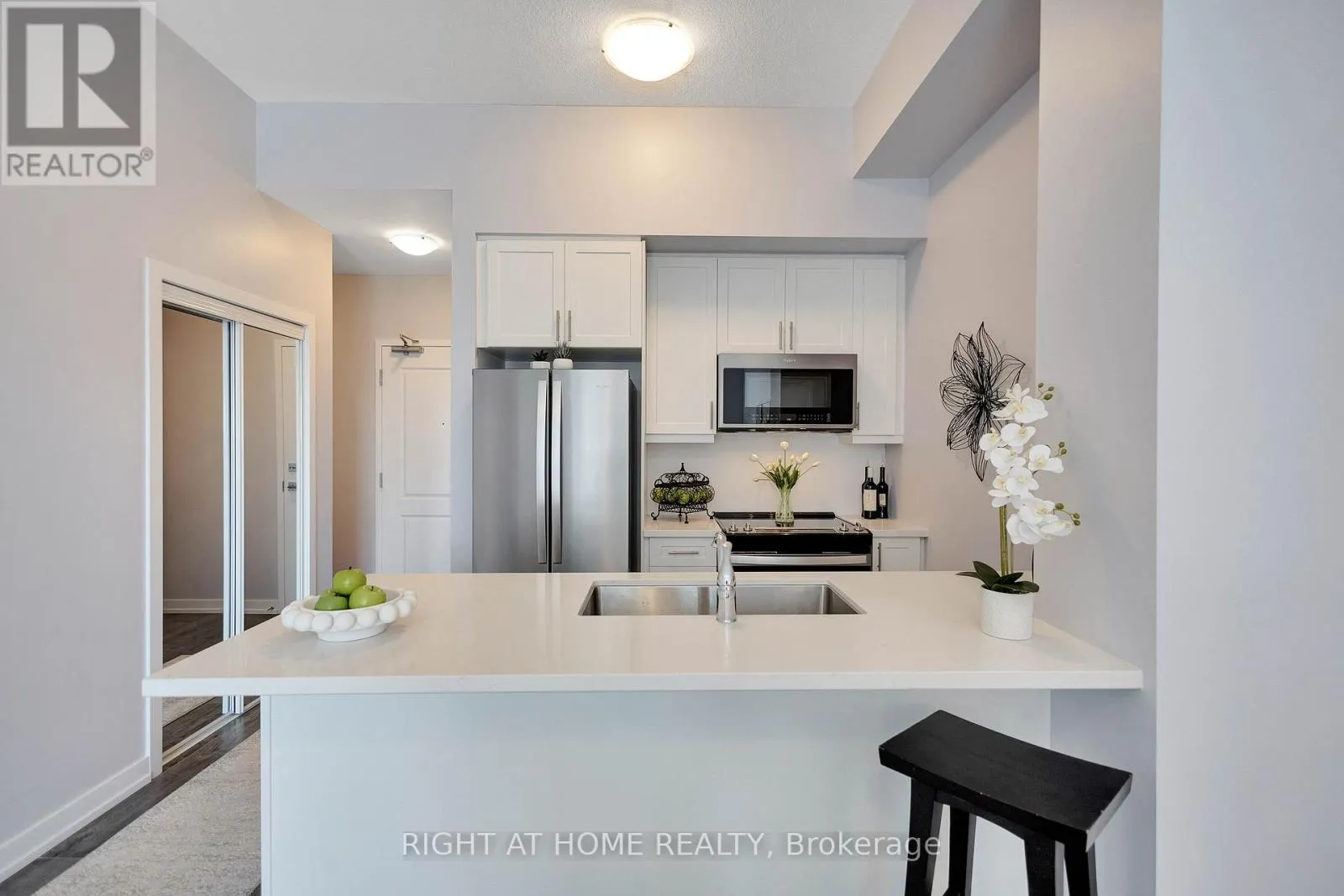 Stylishly upgraded, and move-in ready! Welcome to this exceptional 1+Den condo by New Horizon Development Group in the highly sought-after Trend 3 building. Offering 638 sq. ft. of beautifully finished living space, this suite perfectly blends modern design with everyday comfort-ideal for first-time buyers, downsizers, or savvy investors. The modern kitchen is both elegant and timeless, showcasing quartz countertops, stylish