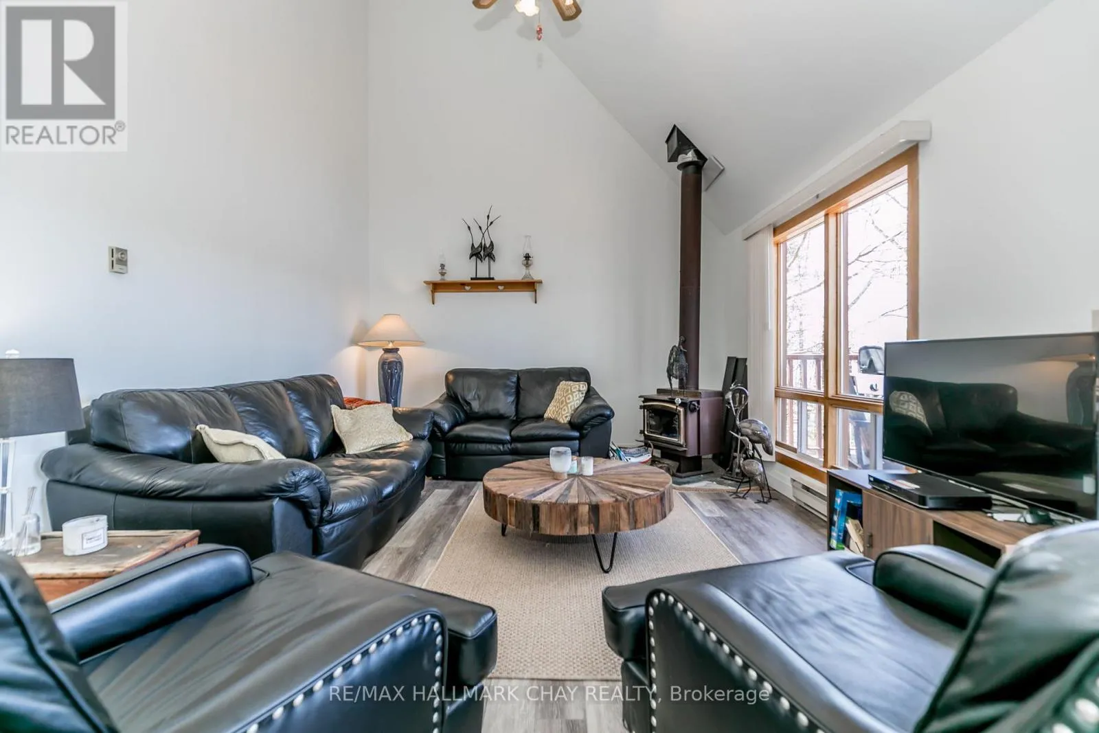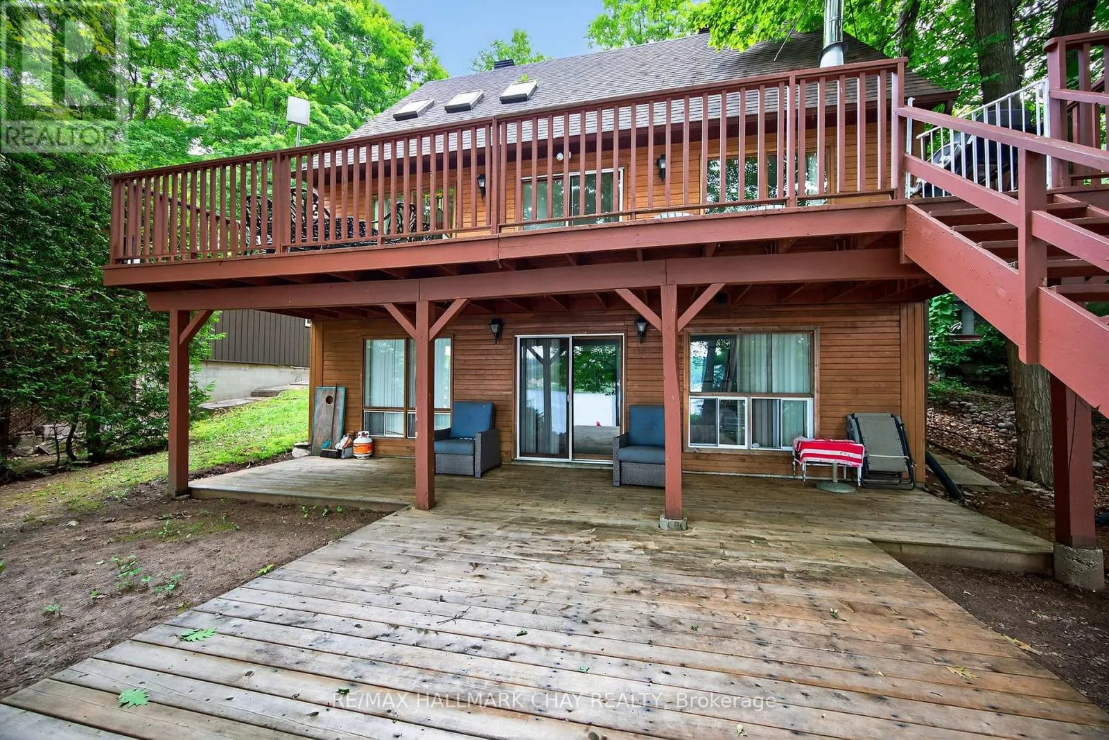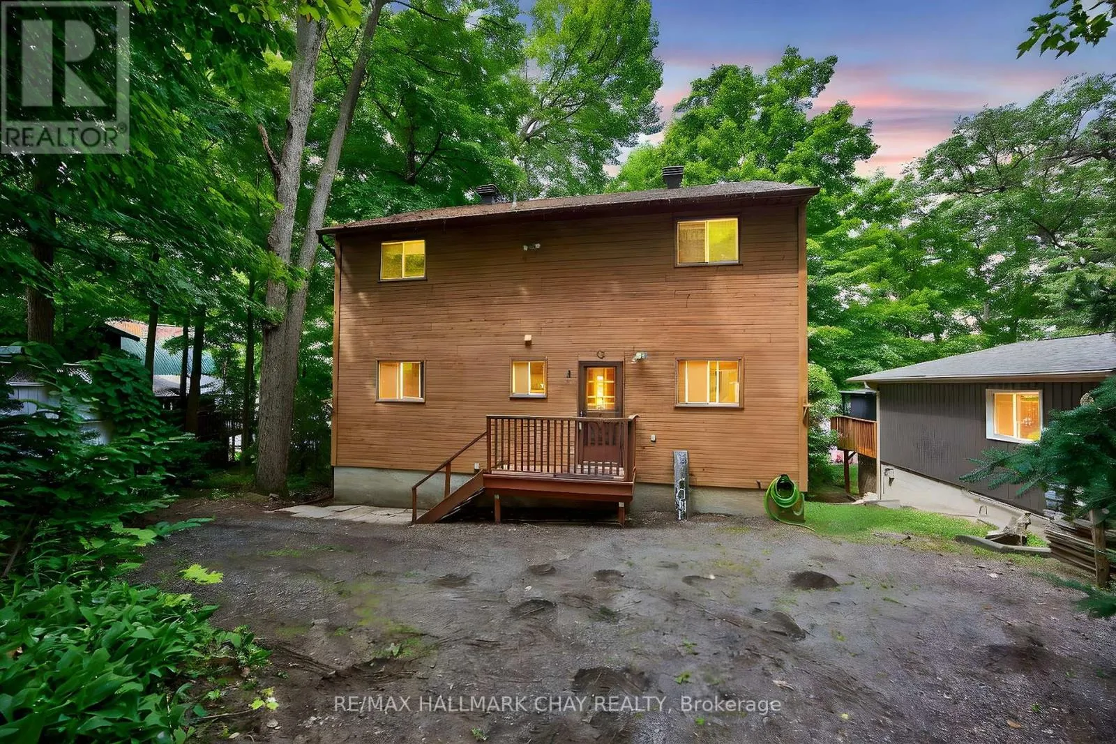 Nestled along 50 feet of pristine shoreline with coveted western exposure, this enchanting 3-bedroom, 3-bathroom chalet-style cottage offers the perfect blend of charm, comfort, and functionality. Set on the tranquil waters of Farlain Lake, the property showcases breathtaking sunsets and serene lake views year-round. The main level features a bright, open-concept living and dining area with soaring cathedral ceilings and