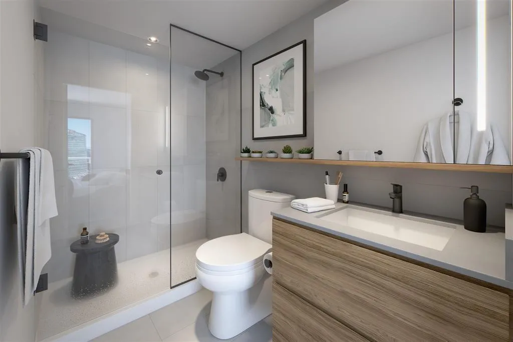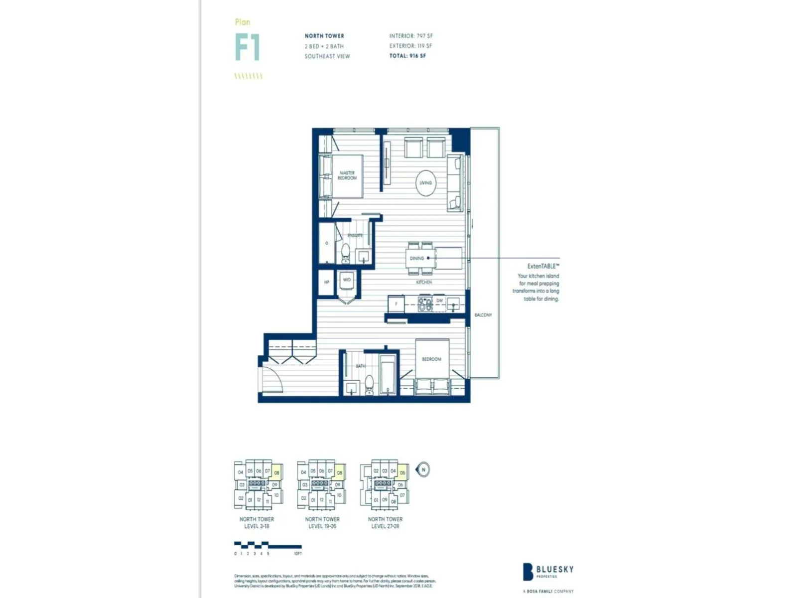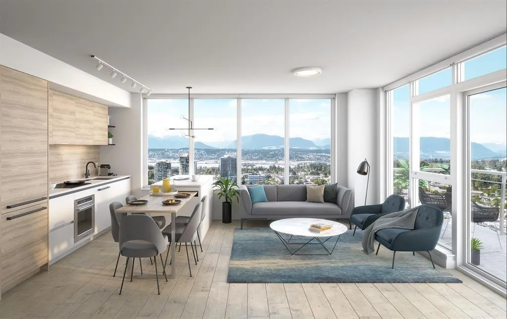 University District by BOSA Bluesky Properties. 2 Bed/2 bath Corner unit, 22nd floor. Lots of natural light from East and West. Strategically planned master community in Surrey Central, situated steps from Skytrain and short walking distance from post-secondary institutions, SFU Surrey/Kwantlen Polytech Uni. Multiple Community Parks/Chuck Bailey Rec Centre. Italian kitchen featuring contemporary wood-grain finish, premium appliance package with ExtenTABLE.