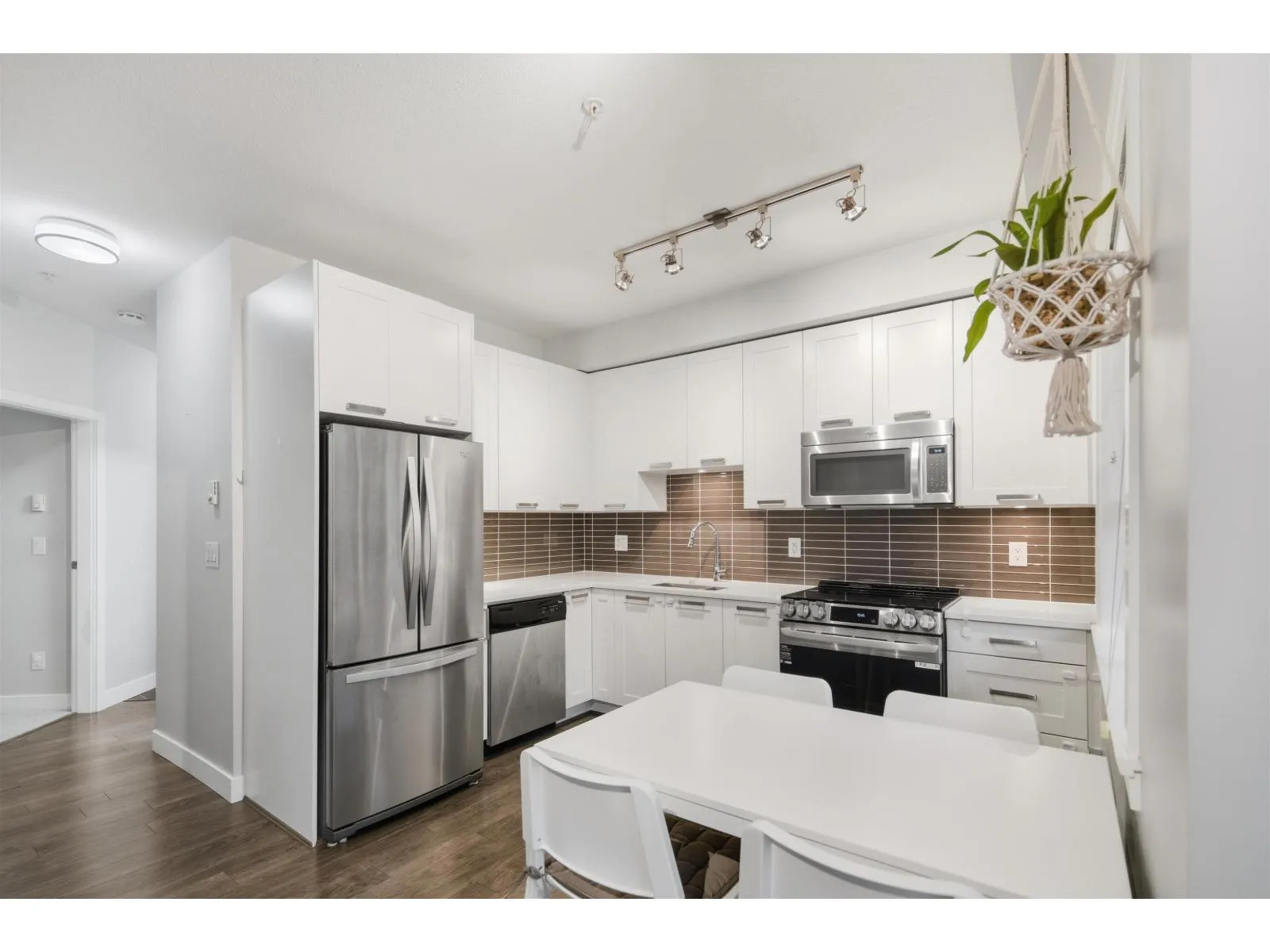 Welcome to G3 Residences, a modern and walkable community near the heart of Guildford! This stylish, two-bedroom corner unit condo in the Premiere Building offers ground-level ease with a private, elevated balcony-perfect for morning coffee or evening relaxation. Enjoy 9-foot ceilings, large south- and west-facing windows, and a bright, open-concept layout with quartz countertops and stainless-steel appliances across 738 sqft