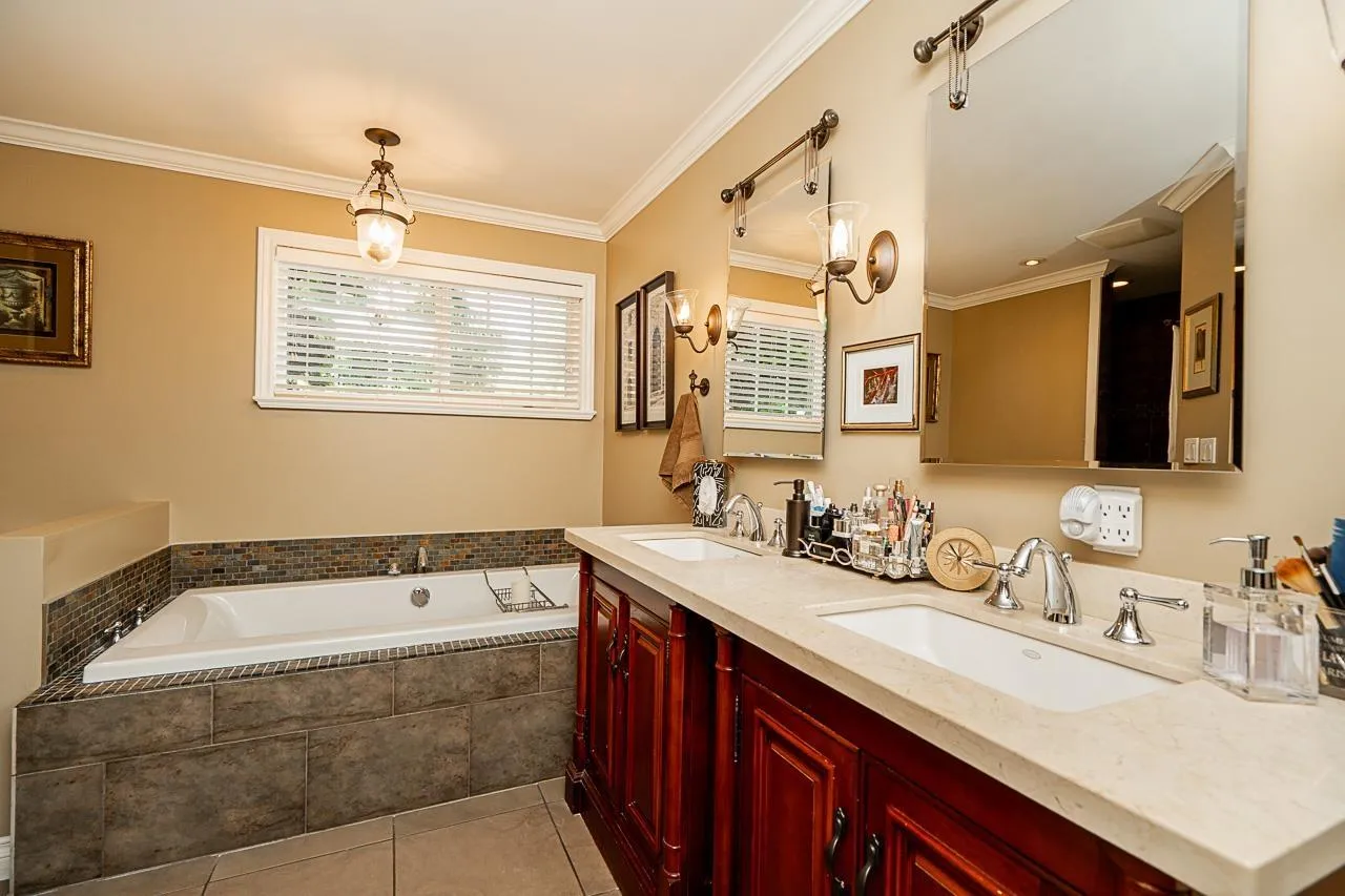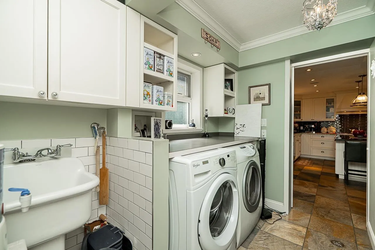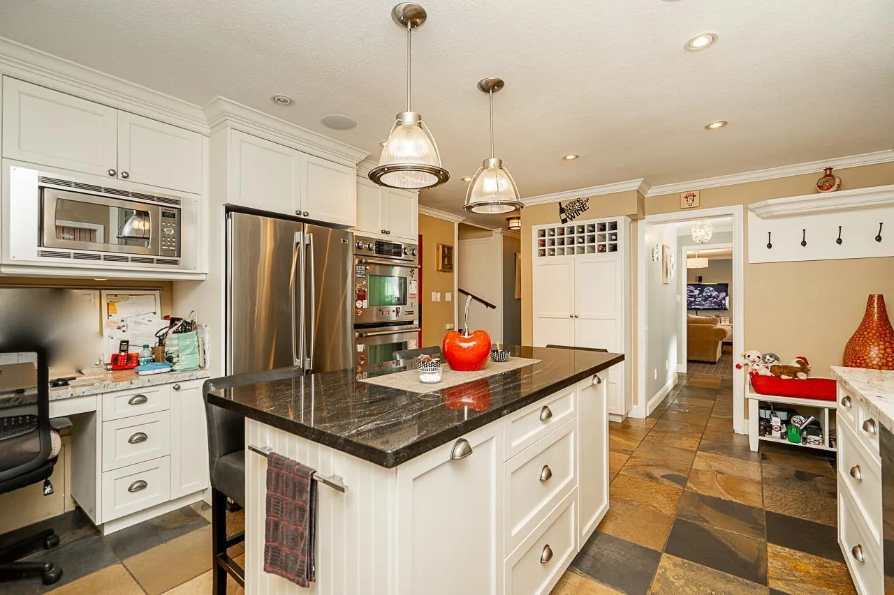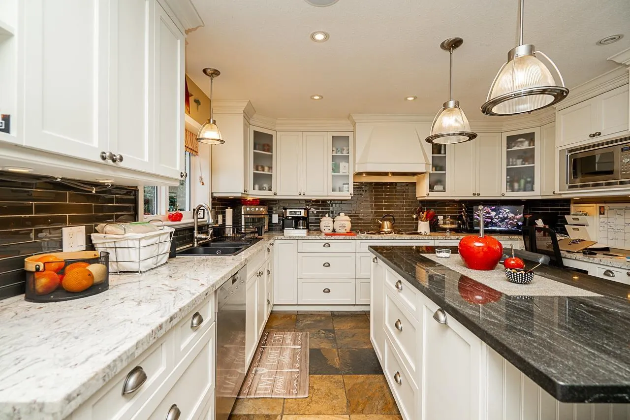 Immaculate Home in South Surrey!!! Stunning & adorable home in desirable Ocean Park! Country chic w/high quality finishing. Gorgeous gourmet kitchen w/heated floors, double ovens, gas stove, stainless hood-fan & overlooking the beautiful landscaped yard. Oversized rooms, office/den on main, formal dining/living & family rooms, peek-a-boo/see thru gas fireplace, bedrooms are on the upper floors, large upper bedroom could also
