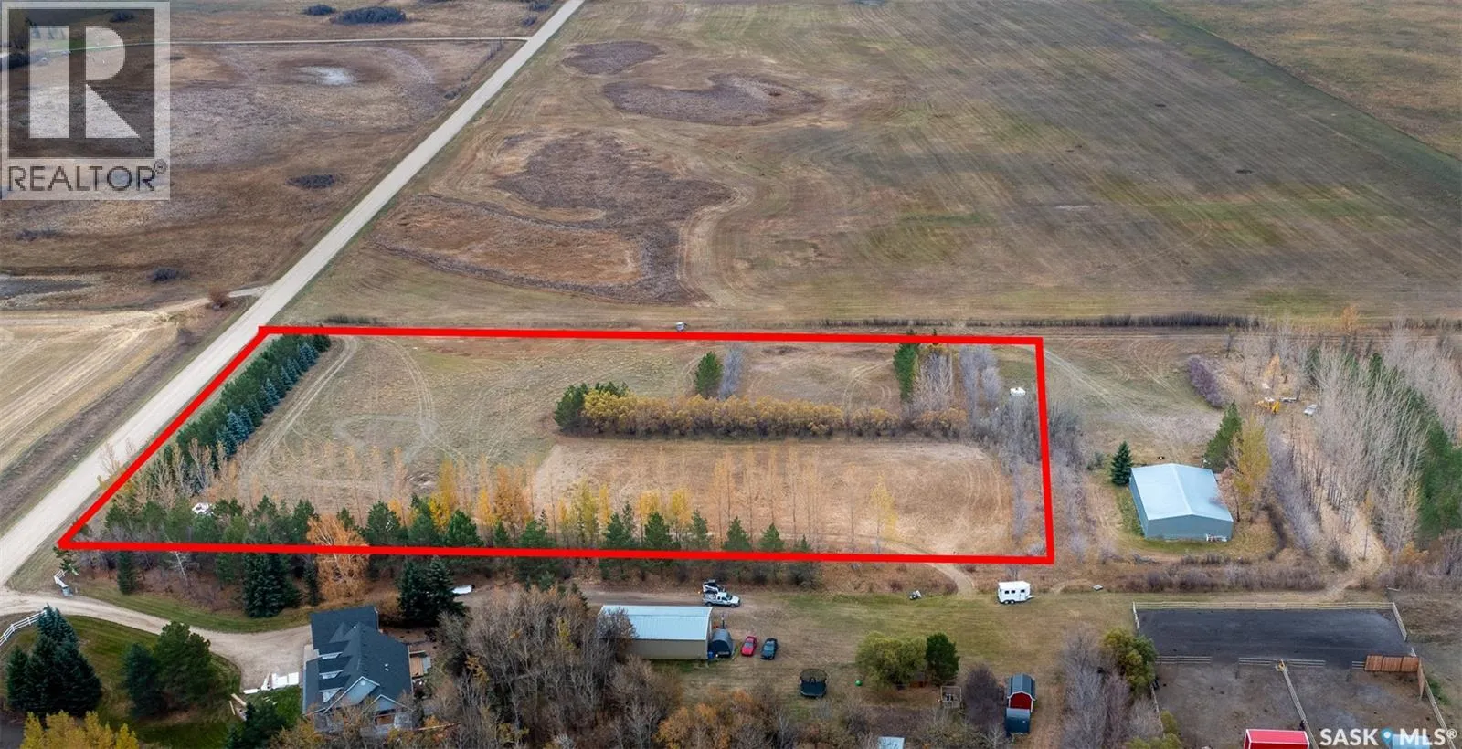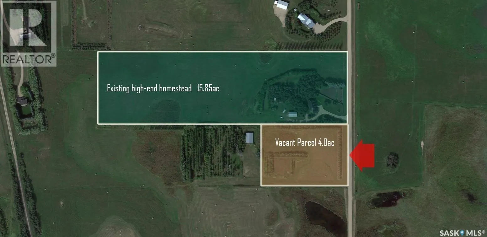 Tucked away just nine minutes south of Saskatoon, this exceptional 4-acre parcel offers a rare opportunity to create your own private sanctuary without sacrificing convenience. Fully treed with a rich mix of mature species, the property provides a natural sense of shelter, beauty, and year-round visual interest; an ideal backdrop for those seeking both privacy and inspiration. Set in a
