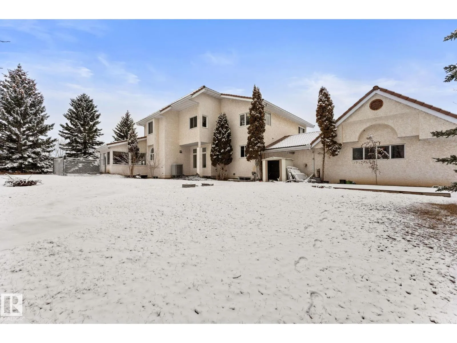 Welcome to this beautiful, 3,000+ sqft property nestled in the highly sought-after Executive Estates, just 2 minutes from Sherwood Park – what a dream! As you turn the corner, you’re immediately greeted by the expansive 3+ acre setting, complete with pasture land, mature trees, and a sense of privacy that makes this property truly special. It’s the perfect backdrop