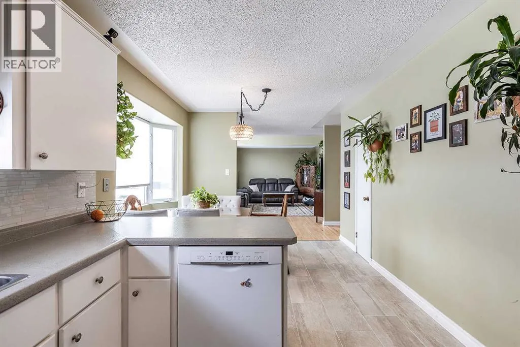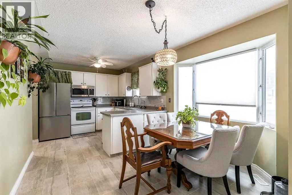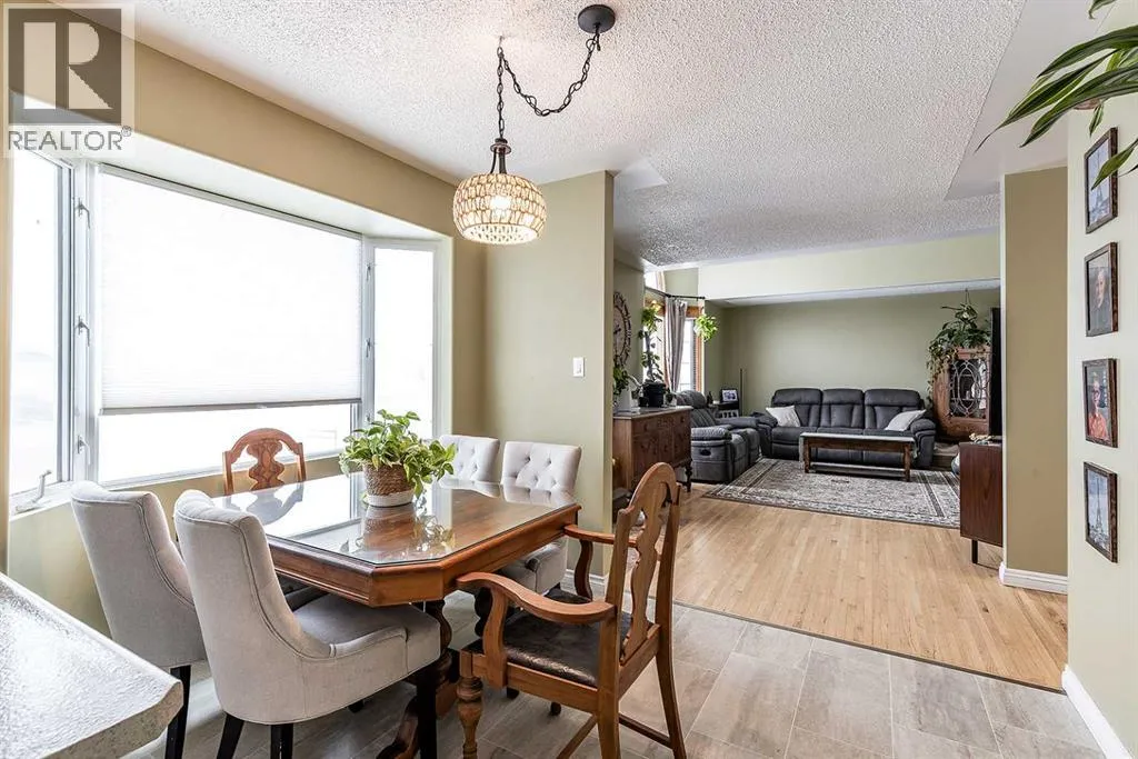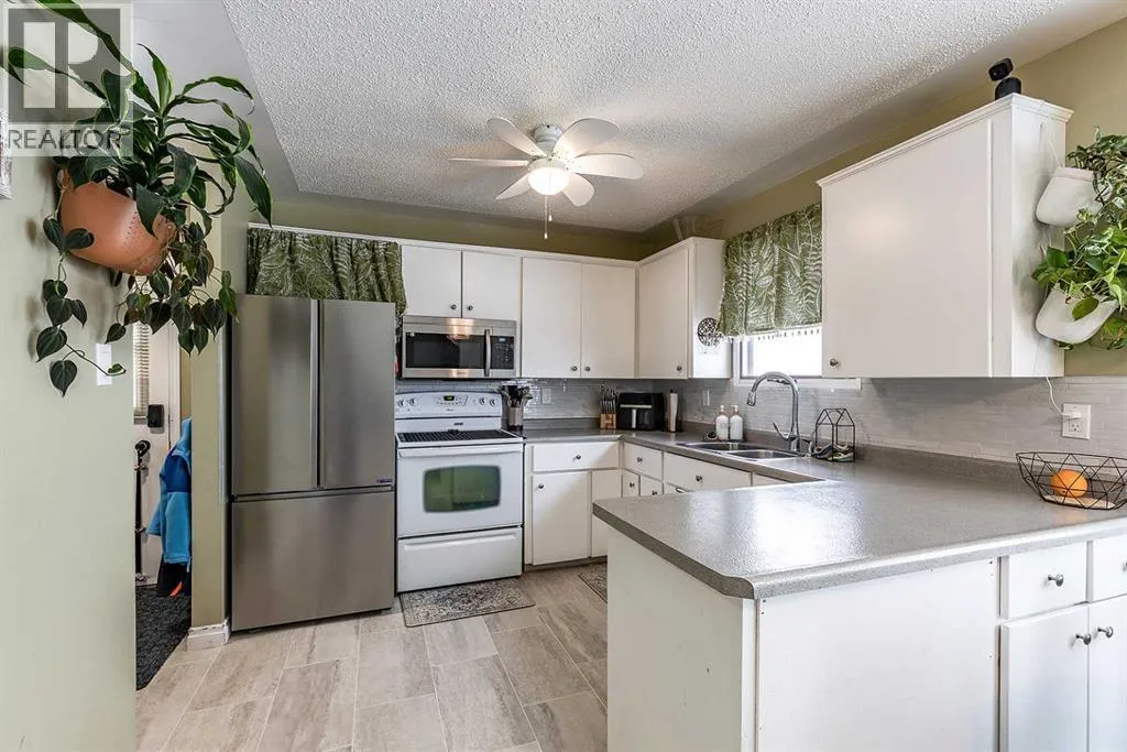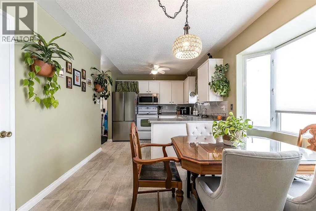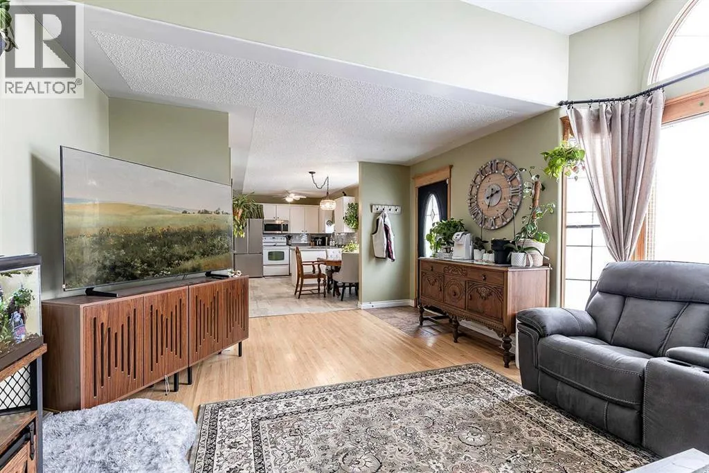 Charming bungalow tucked away on a quiet street in Redcliff! This inviting home offers a bright, open-concept layout featuring a welcoming front living room with soaring cathedral ceilings and large windows that fill the space with natural light.The functional kitchen and dining area are perfect for everyday living, complete with a cozy bay window and a U-shaped kitchen offering ample