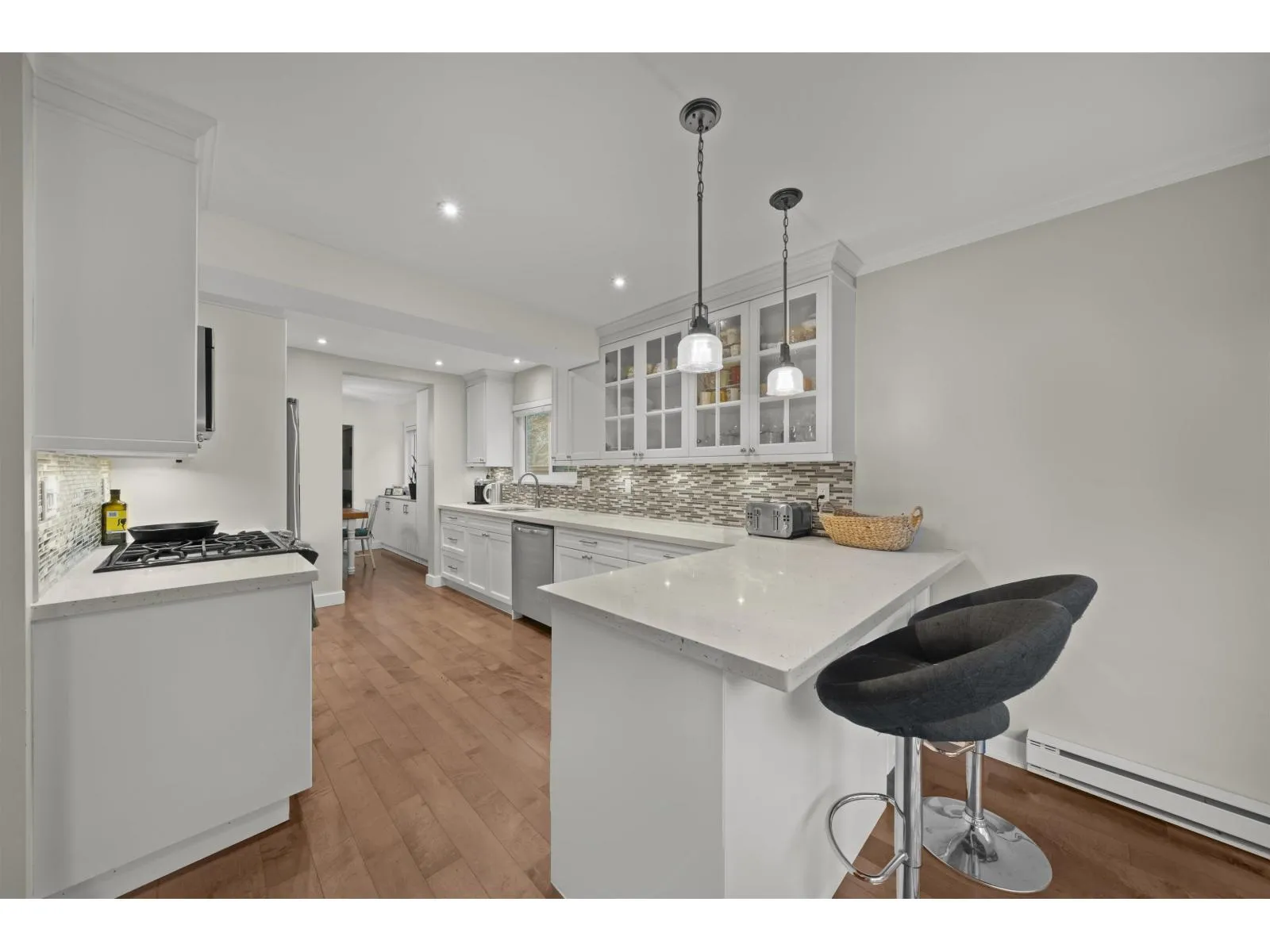 The perfect blend of charm & convenience await you in this updated 1/2 duplex on tranquil 15th Ave-no strata fees & detached-home living feel !You’ll love the curb appeal! Inside, enjoy a bright south-facing L/R & D/R space, flooded w/ natural light & highlighted by a cozy gas fireplace w/ custom built-ins. The refreshed kitchen showcases white cabinetry, quartz counters,