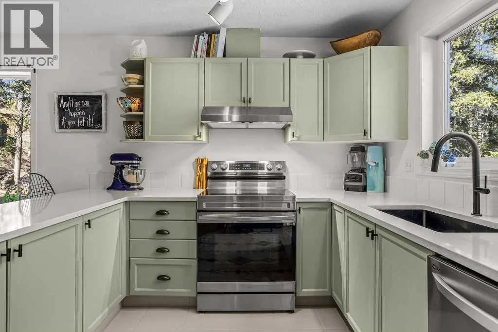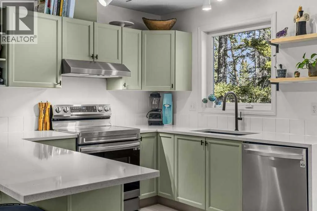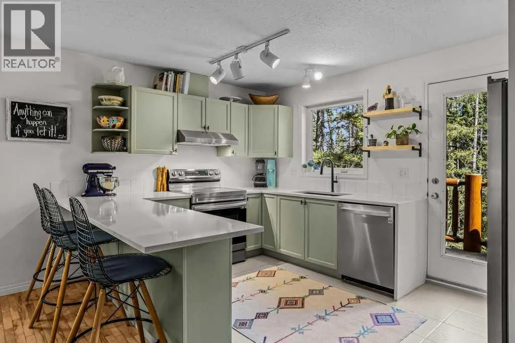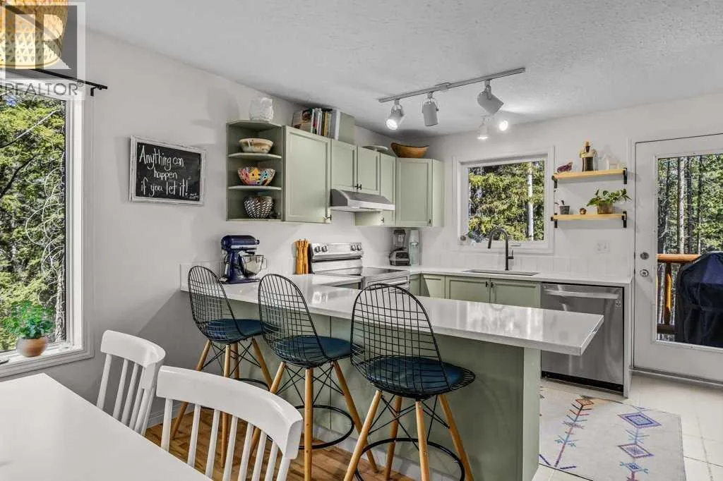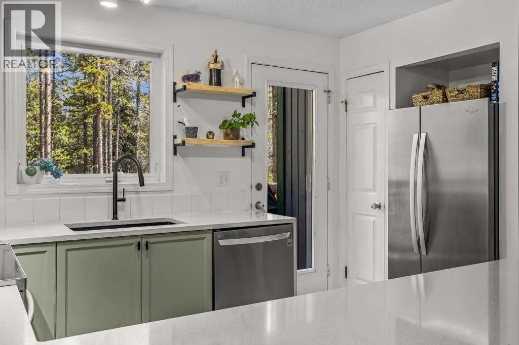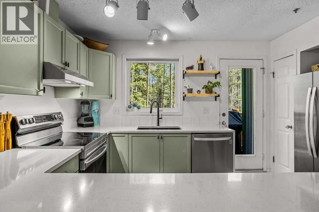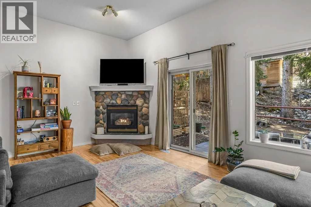 Situated in Rundle Mountain Estates, this well-maintained end-unit townhouse offers a serene forest setting and a quiet, private mountain retreat. With three bedrooms on the upper level and multiple living areas across three levels, the layout is ideal for families or a weekend escape. The bright, open-concept main floor features a functional kitchen, spacious dining area, and inviting living room