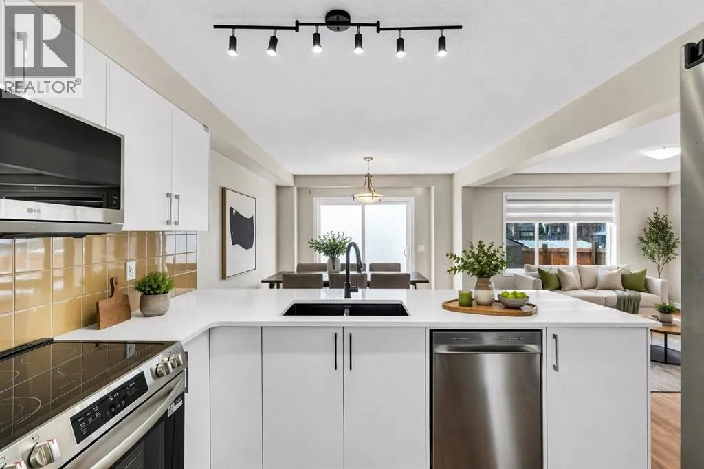 an abundance of natural light that floods the main floor, creating a warm and inviting atmosphere. The great room, complete with a cozy gas fireplace, is perfect for intimate gatherings or cozy movie nights. Adjacent to the great room, the dining area provides a perfect setting for family meals and game nights alike. Recently renovated chef-inspired kitchen is a culinary enthusiast’s dream, boasting a generous wrap-around island that offers additional seating, stainless steel appliances, and ample counter space for all your cooking needs. A convenient walk-in pantry ensures you have everything at your fingertips, while the seamless flow to the dining area makes entertaining a breeze. This level also includes access to a single attached garage and a thoughtfully placed 2-piece powder room, marrying functionality with everyday comfort. Venture upstairs to discover the spacious primary bedroom, a serene retreat designed for relaxation. Featuring a walk-in closet and a renovated 4-piece ensuite bath, this private oasis provides a perfect escape at the end of the day. Two additional bedrooms share another full bathroom, and a conveniently located laundry room adds to the home’s practicality. The fully finished basement is a standout feature of this property, completed with permits for your peace of mind. This versatile space offers endless possibilities, whether it be a mother-in-law suite or a teen retreat. It includes a large family room with a wet bar/second kitchen area, a sizable den that could easily be converted into a fourth bedroom, ample storage, and another full 4-piece bathroom. Step outside to your fenced backyard, which offers plenty of space for children to play, pets to roam, and outdoor entertaining. Imagine summer barbecues and family gatherings in this delightful outdoor setting. Located conveniently near schools (with a new K-8 school under construction), parks, greenspaces, and the expansive Chinook Winds Park, this home not only offers a beautiful living space but also a vibrant lifestyle. (id:62650)