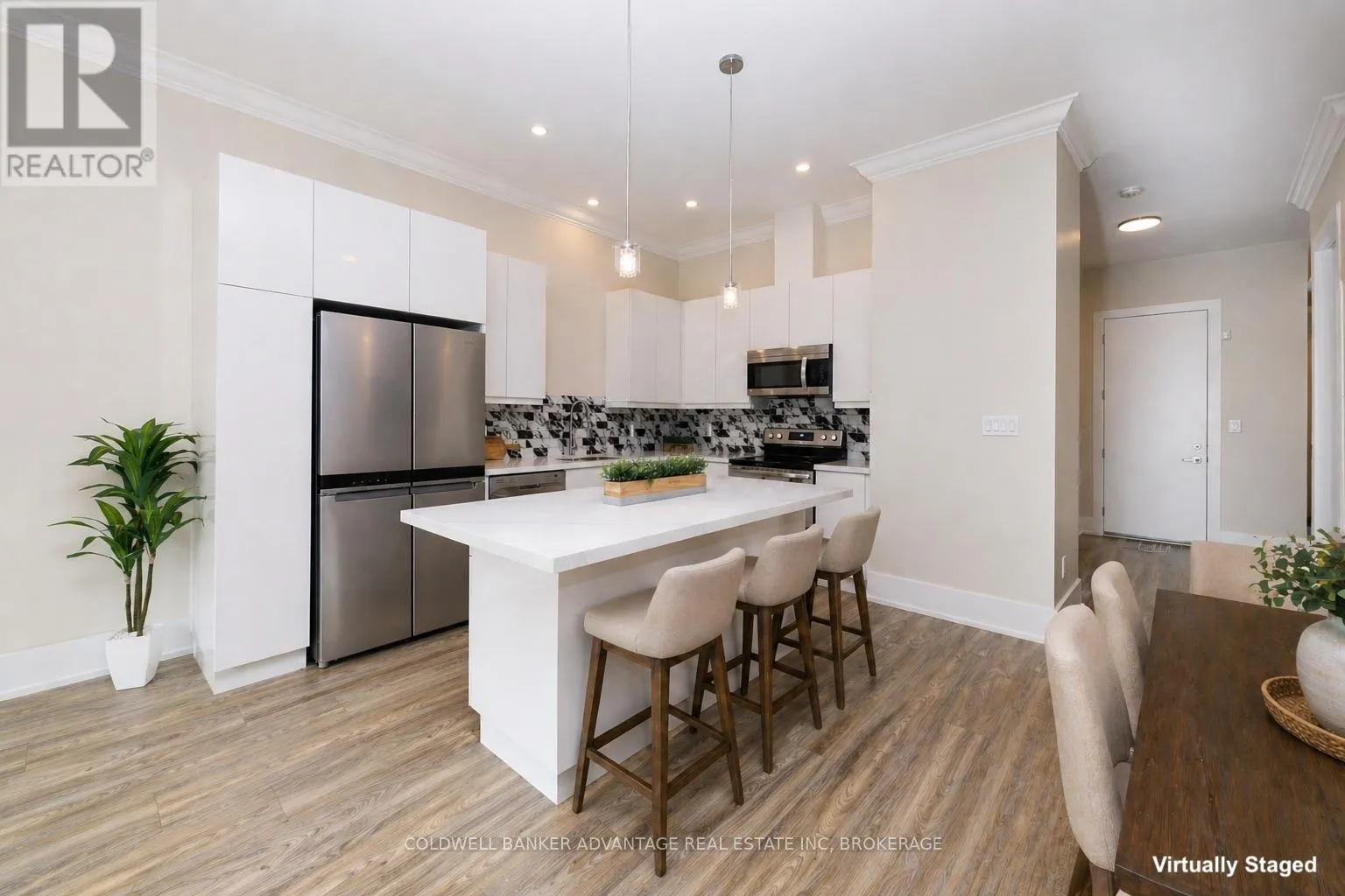 Impressive freehold end-unit townhome with a single attached garage and soaring ceilings, offering over 2,000 sq ft of beautifully finished living space in the highly sought-after Hansler Heights neighbourhood. With its abundance of natural light, this home delivers a true detached like feel. The main floor is designed for modern living, featuring a bright open concept layout centred around a