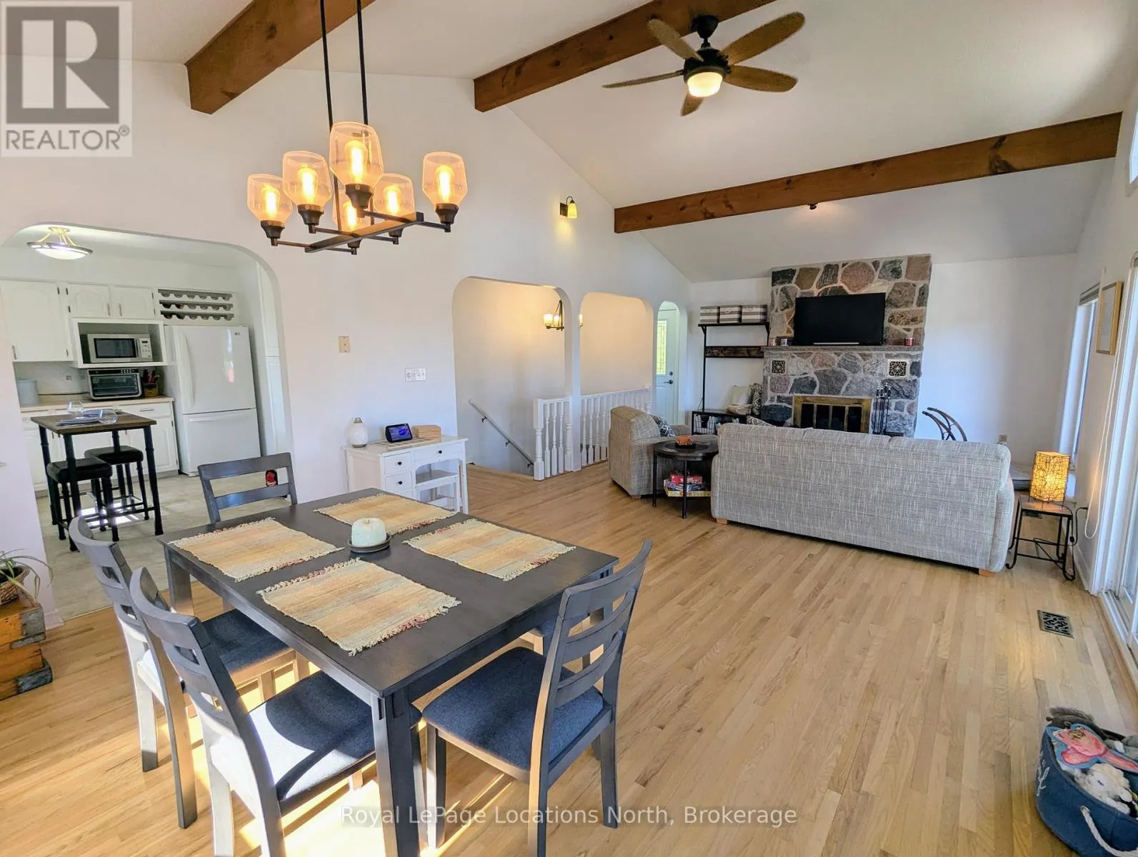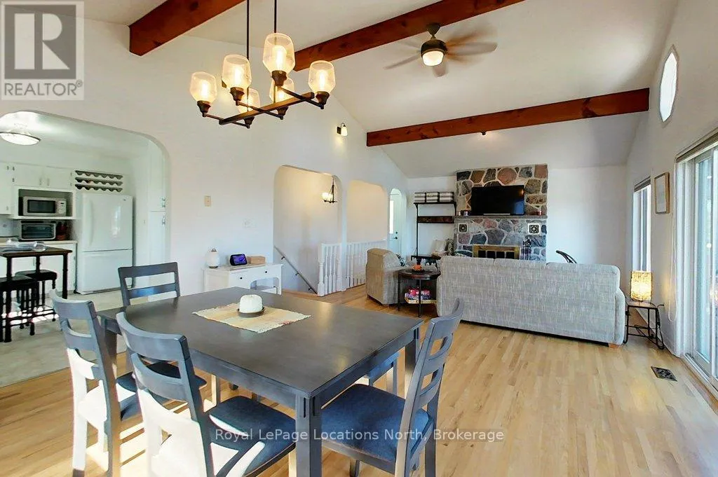 Spend summer by the bay. This four-bedroom, two-bathroom home offers water access across the street and partial views of Georgian Bay. Highlights of this home include the cathedral ceiling, stone fireplace and walk outs on both levels. The main floor boasts hardwood floors, a renovated semi-ensuite bathroom, walk out to the back deck and two great sized bedrooms. The