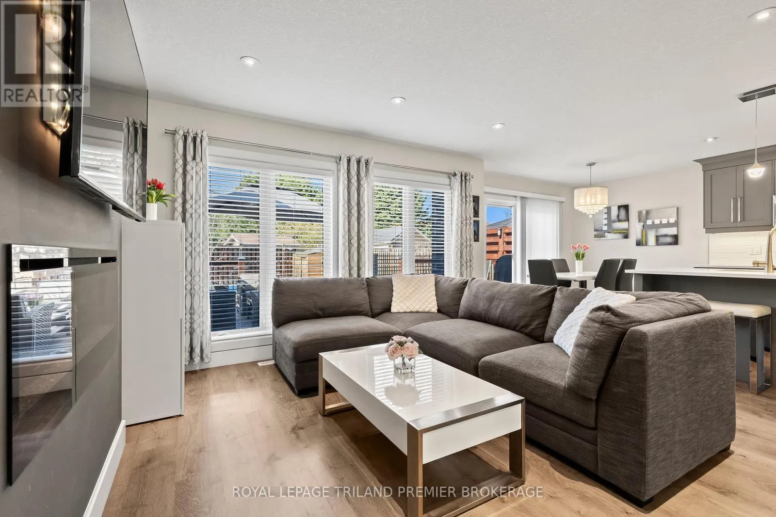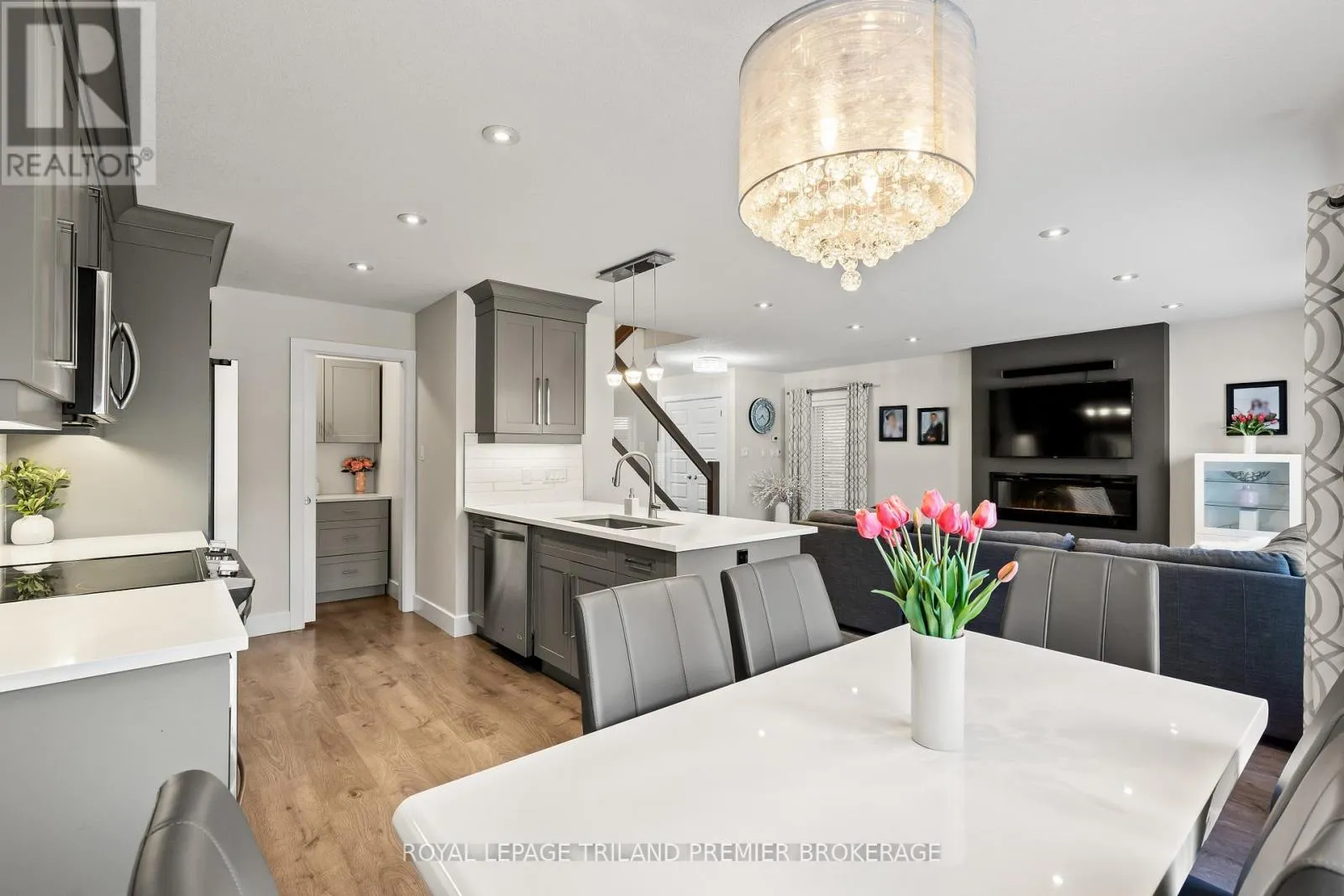 Welcome to this beautiful, move-in ready home in the highly desirable Foxfield community. From the moment you step into the spacious foyer, you’re greeted by a bright, open-concept main level designed for both comfort and style, featuring laminate flooring throughout. The generous great room showcases a contemporary electric fireplace and large windows that flood the space with natural