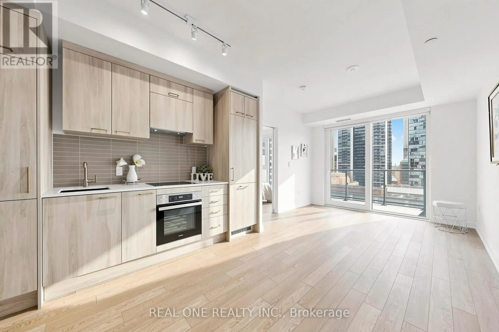 Luxury Downtown Living at The Charles at Church – brand new by Aspen Ridge Homes. This is a one bedroom plus den (office area, which I put one side table and flower and one picture)This east-facing with unblocked view offers a bright, efficient layout with floor-to-ceiling windows, 9-ft ceilings, upgraded vinyl flooring, custom roller blinds, and a spacious bathroom.