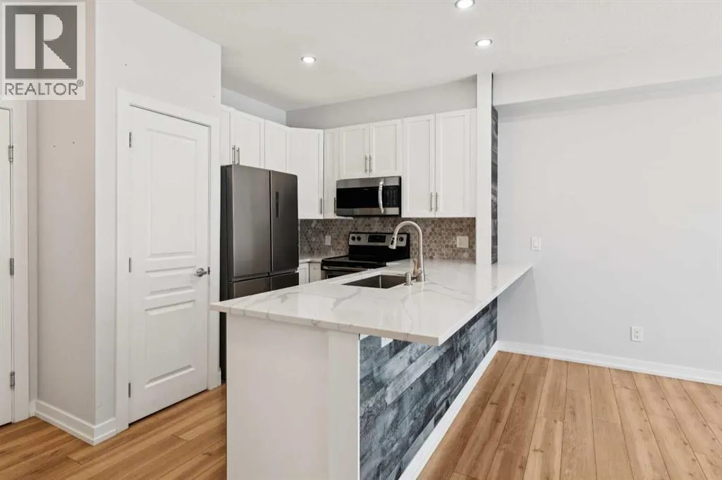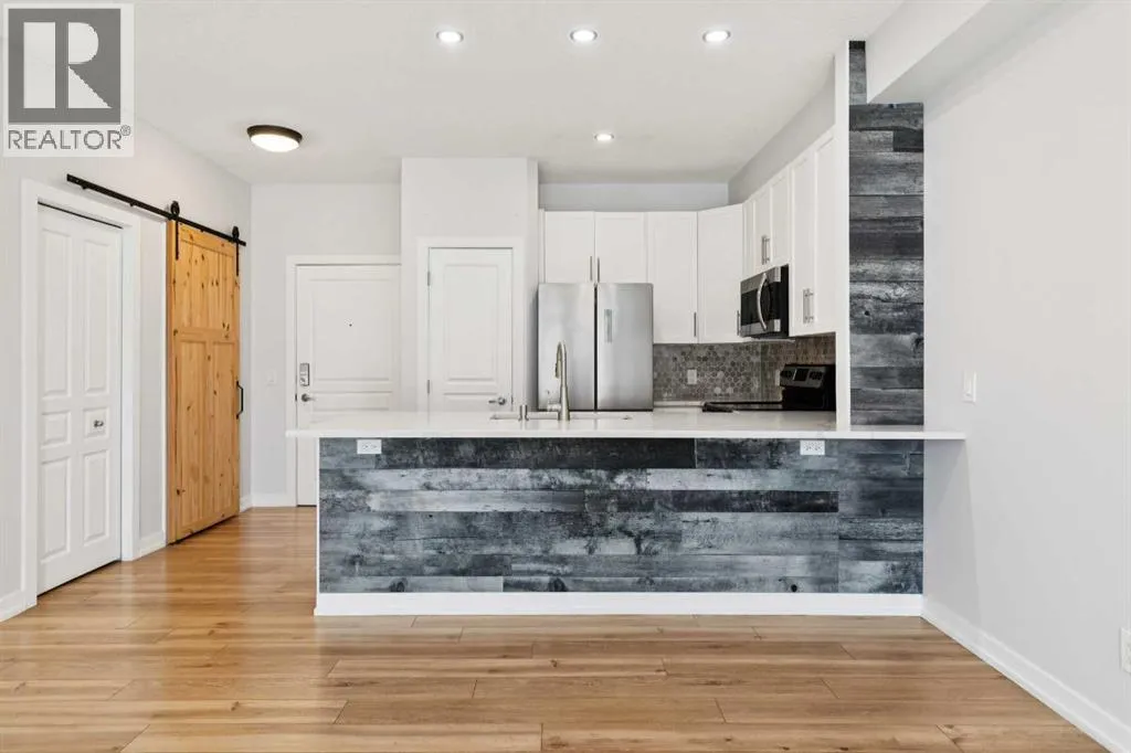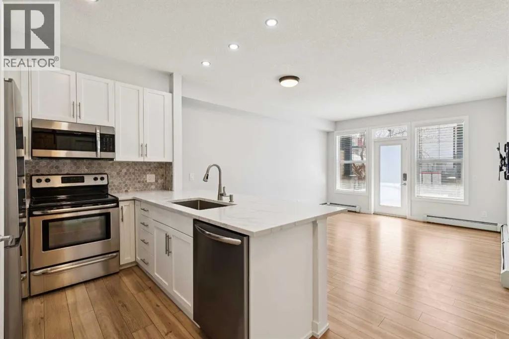 Welcome to Unit 112 – 10 Panatella Road NW. This inviting layout main floor unit really stands out in the highly sought-after Milano complex. Located on the ground floor, this beautifully maintained condo offers both style and functionality with thoughtful updates throughout.The kitchen is a true highlight, featuring sleek quartz countertops, crisp white cabinetry, and stainless steel appliances—perfect for both