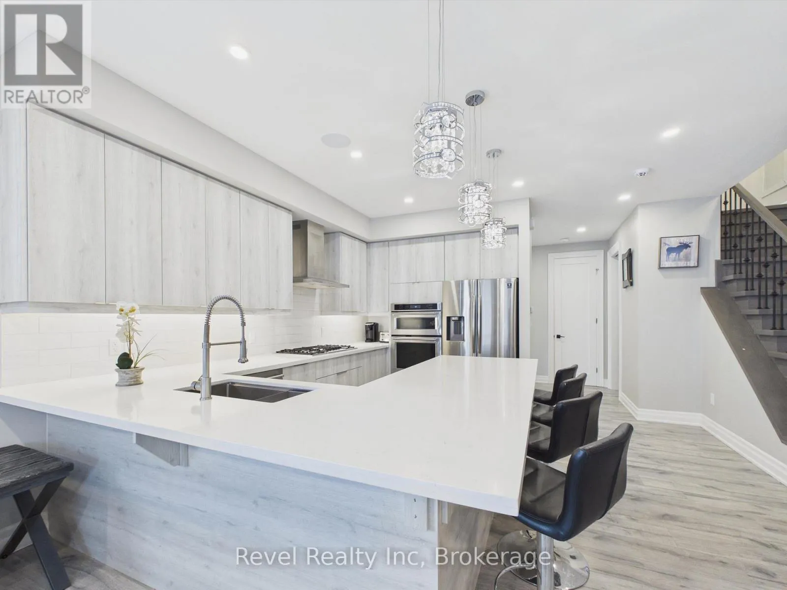 Elevate your lifestyle with this exceptional 4-bedroom, 5-bathroom almost 2800 sq. ft. executive freehold end-unit townhome. Perfectly positioned in central Bracebridge with coveted access to the Muskoka River just moments away. Set on an oversized, fully fenced lot, this residence offers the rare combination of privacy, scale, and high-end design. Soaring 9-foot ceilings, oversized windows, and a seamless open-concept layout