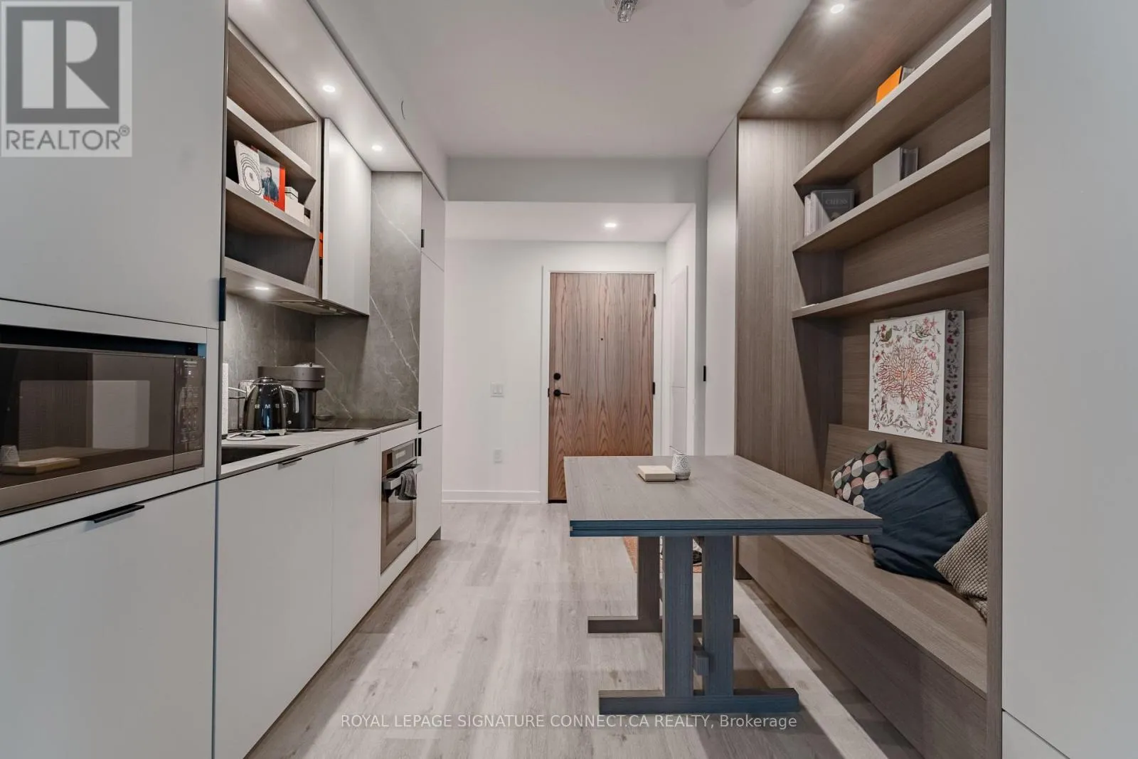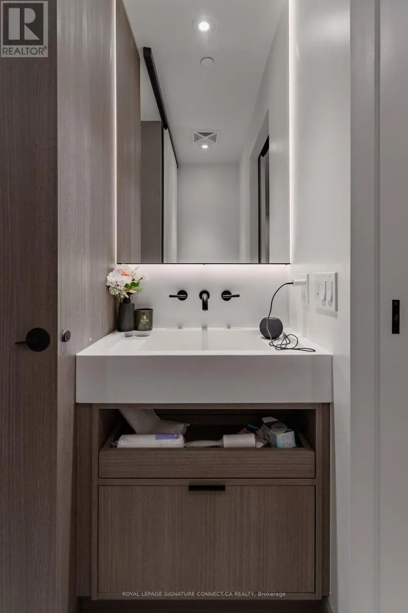 Immerse yourself in sophisticated urban luxury at 55C Bloor Yorkville, located at 55 Charles Street East in one of Toronto’s most coveted neighborhoods. This impeccably designed 537- square-foot one-bedroom suite features a bright West-facing exposure that fills the space with afternoon light through floor-to-ceiling windows and a stylish Juliette balcony. The interior showcases a modern, open-concept layout highlighted by a